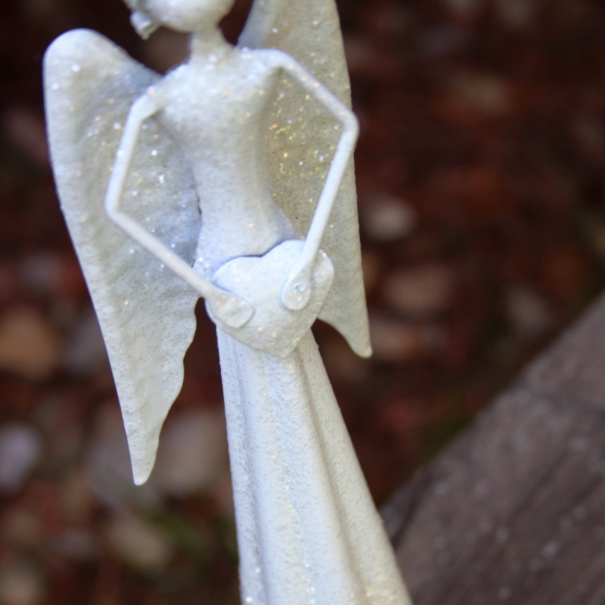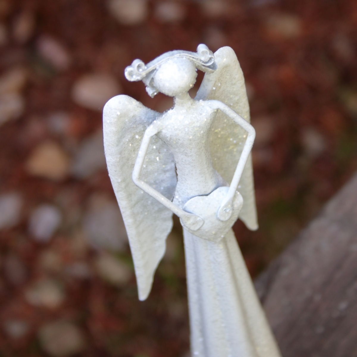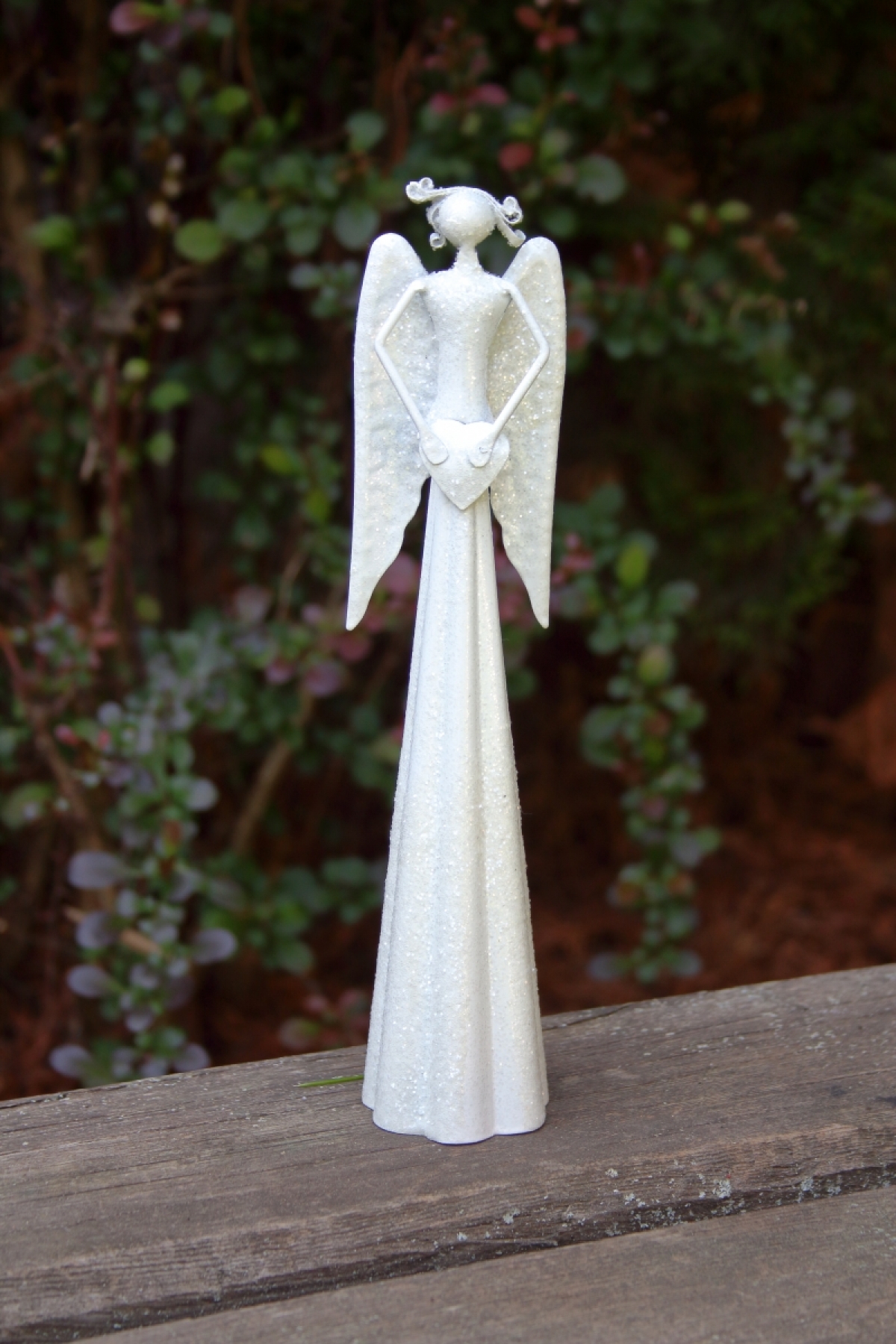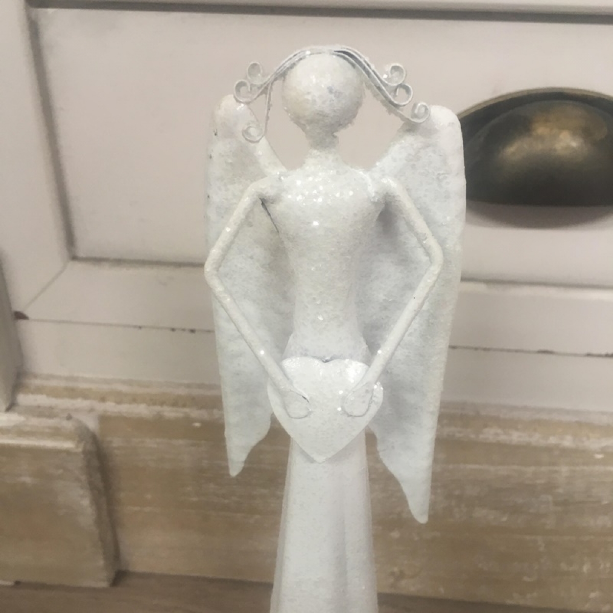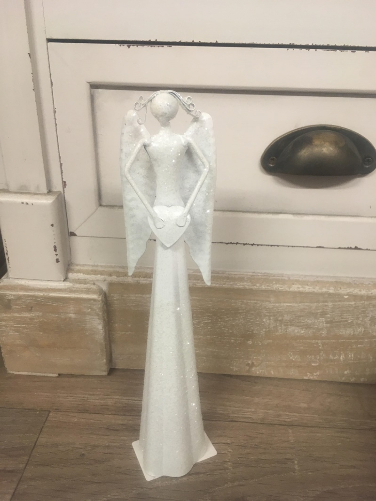 Anděl kovový se srdcem bílý třpytivý 25cm