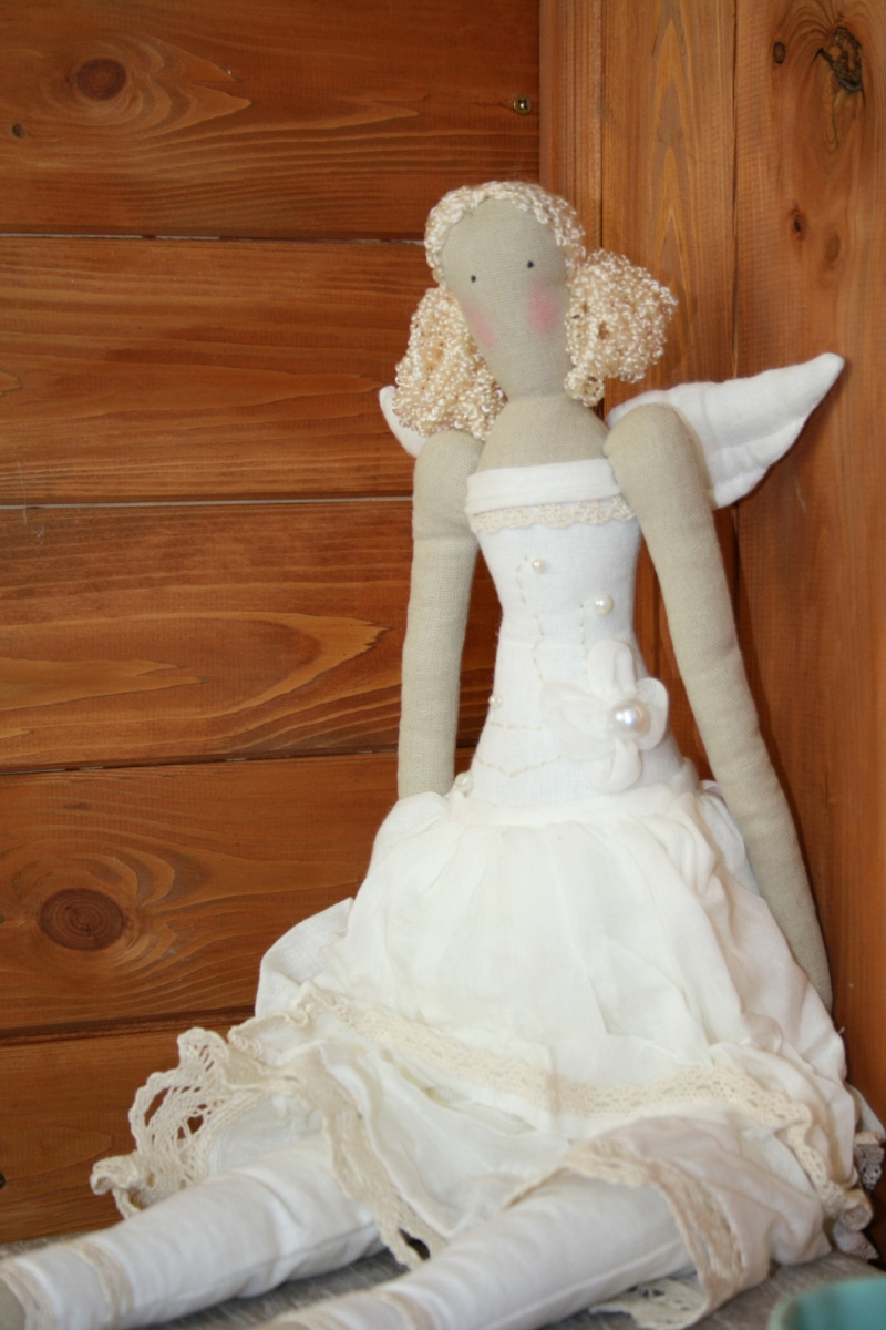 Anděl látkový je krásným doplňkem interiéru pro všechny něžné duše.