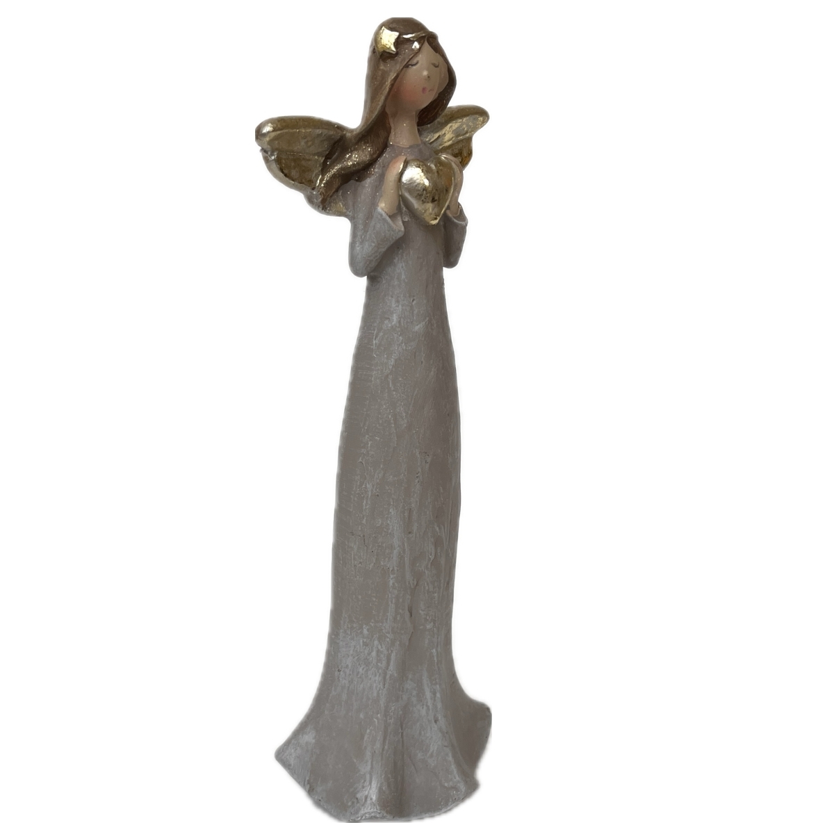 Tento polyresinový anděl Naděje srdce, vysoký 25 cm, drží v náruči objetí srdce — symbol lásky, ochrany a naděje. Je navržen tak, aby jeho přítomnost působila tiše, ale cítili jste ji při každém pohledu.