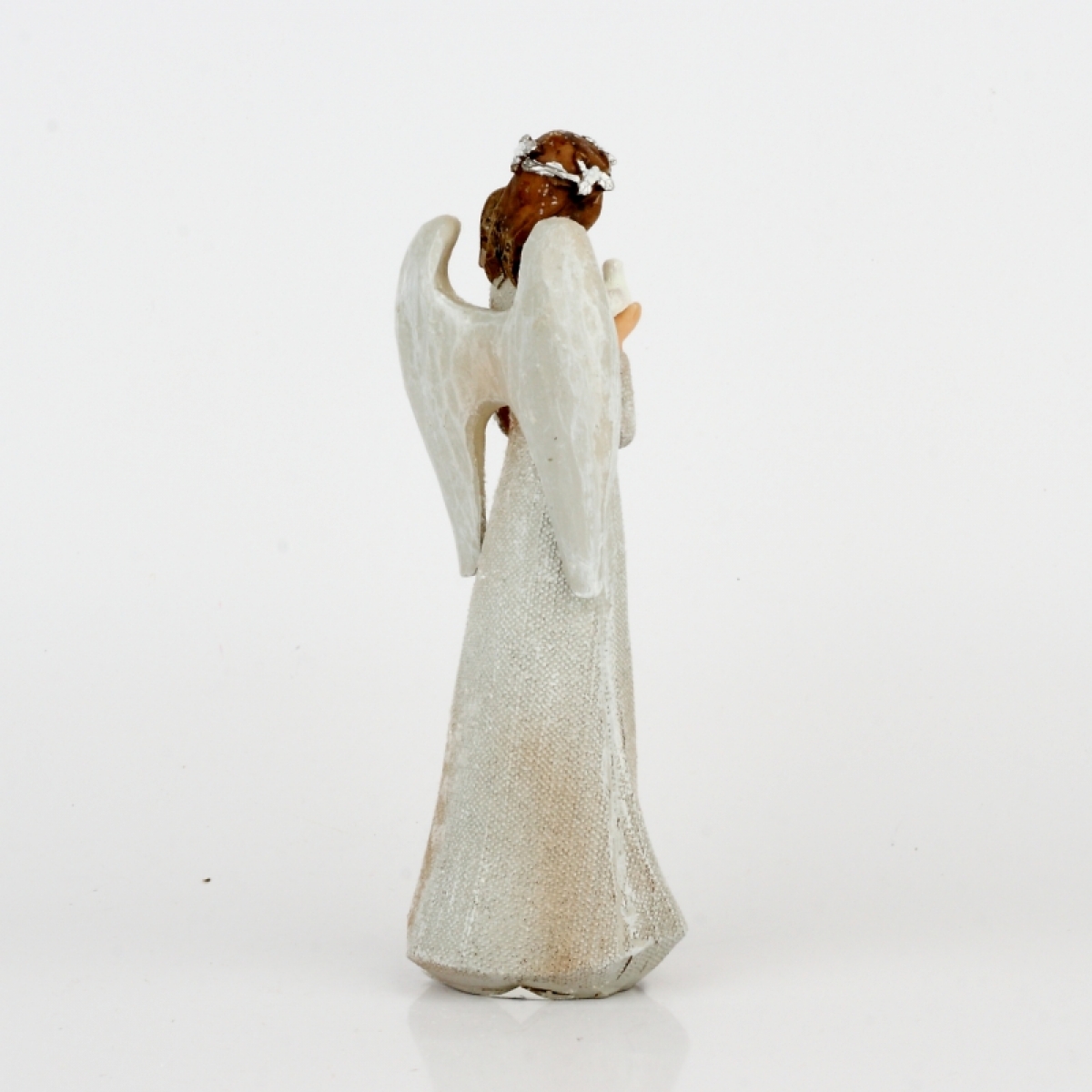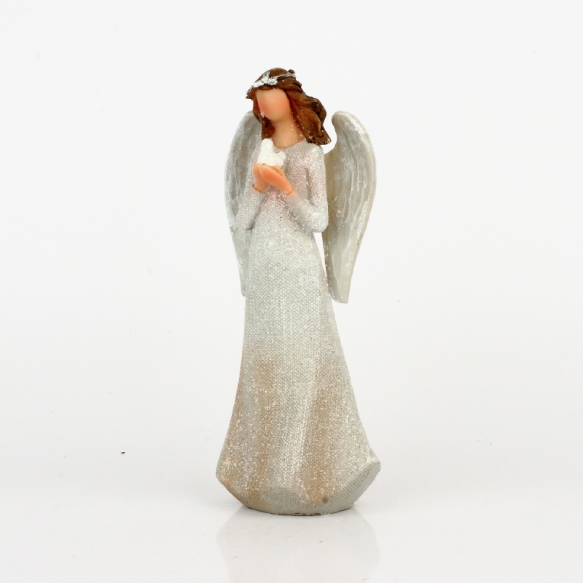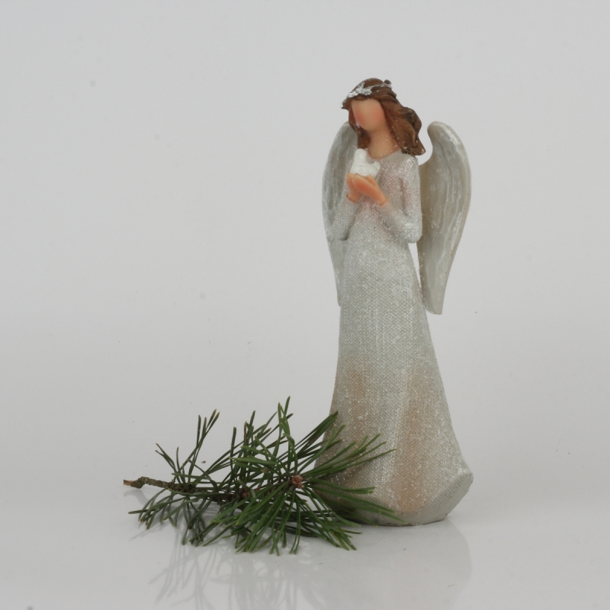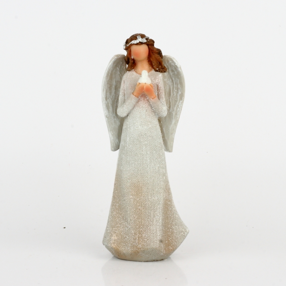 Okouzlující soška anděla s krásnými křídly. V dlaních drží holubičku. Milý dárek nejen pro každou ženu.