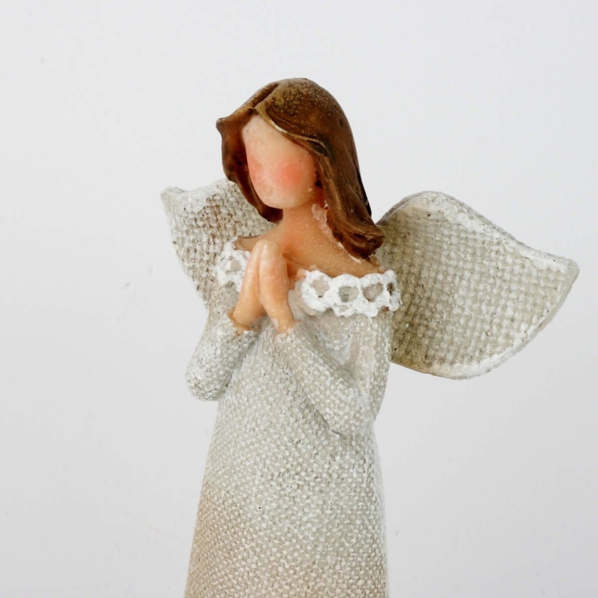 Anděl v šatech s krajkou Modlitba 14cm je symbolem oddanosti a lásky. Andělské sošky vnáší do každého prostoru tajemné kouzlo se špetkou romantiky. Ozdobte krbovou římsu nebo jakoukoliv polici či komodu. Uvidíte, jak drobné dekorace prostor zútulní a zabydlí. A o to nám přeci jde. Cítit se doma dobře.