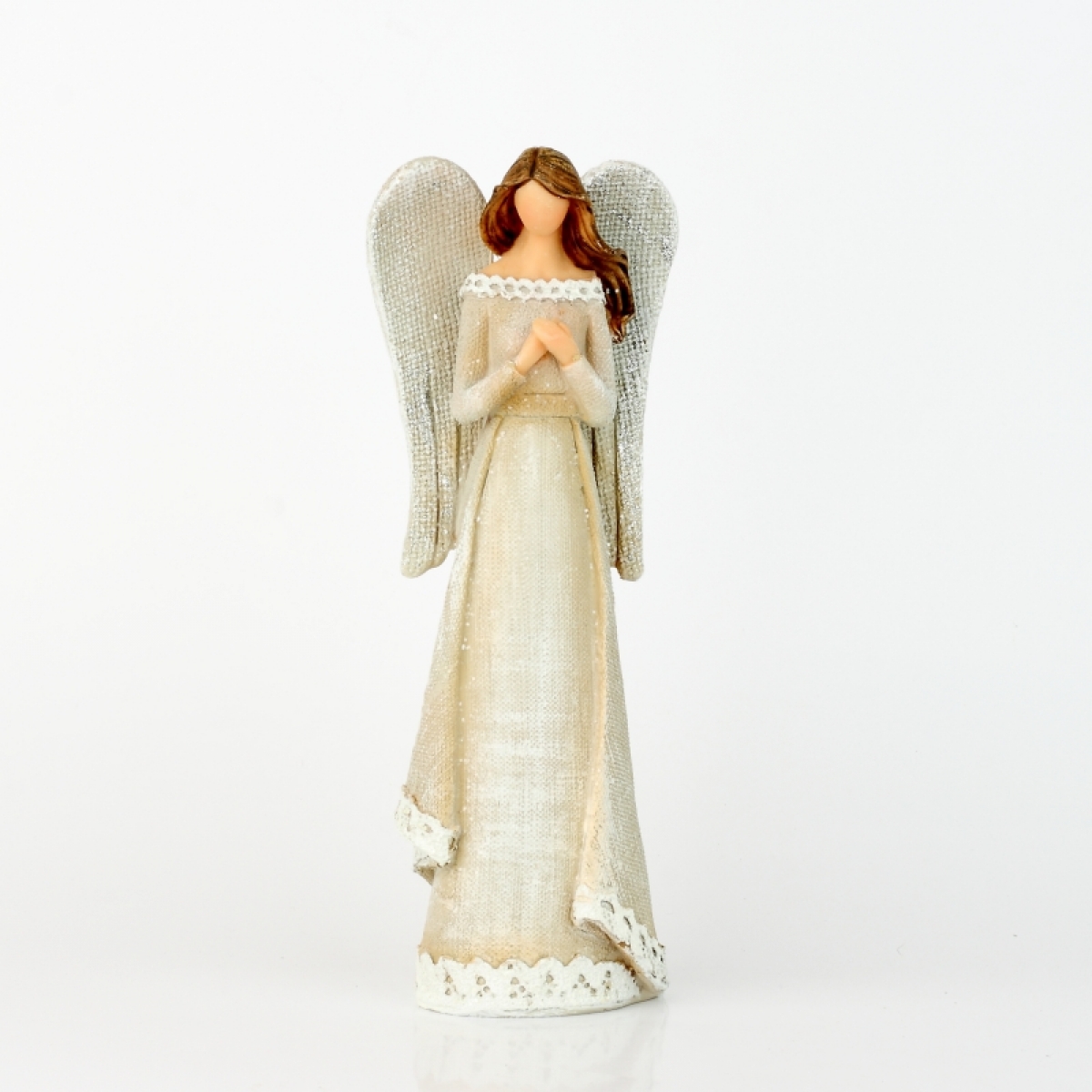 Anděl v šatech s krajkou Modlitba 24cm je symbolem oddanosti a lásky. Andělské sošky vnáší do každého prostoru tajemné kouzlo se špetkou romantiky. Ozdobte krbovou římsu nebo jakoukoliv polici či komodu. Uvidíte, jak drobné dekorace prostor zútulní a zabydlí. A o to nám přeci jde. Cítit se doma dobře.