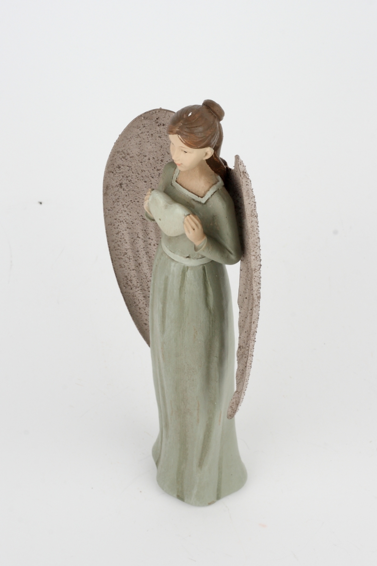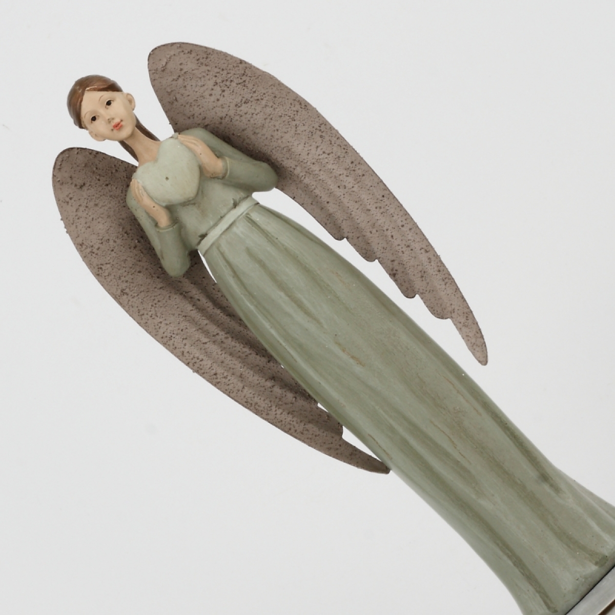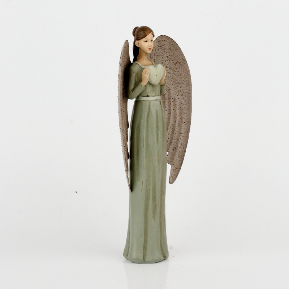 Anděl v zelených šatech s velkými křídly 26cm drží v rukou srdce ... srdce téměř na dlani. Víte o někom, kdo má také své srdce na dlani? <br/ >
