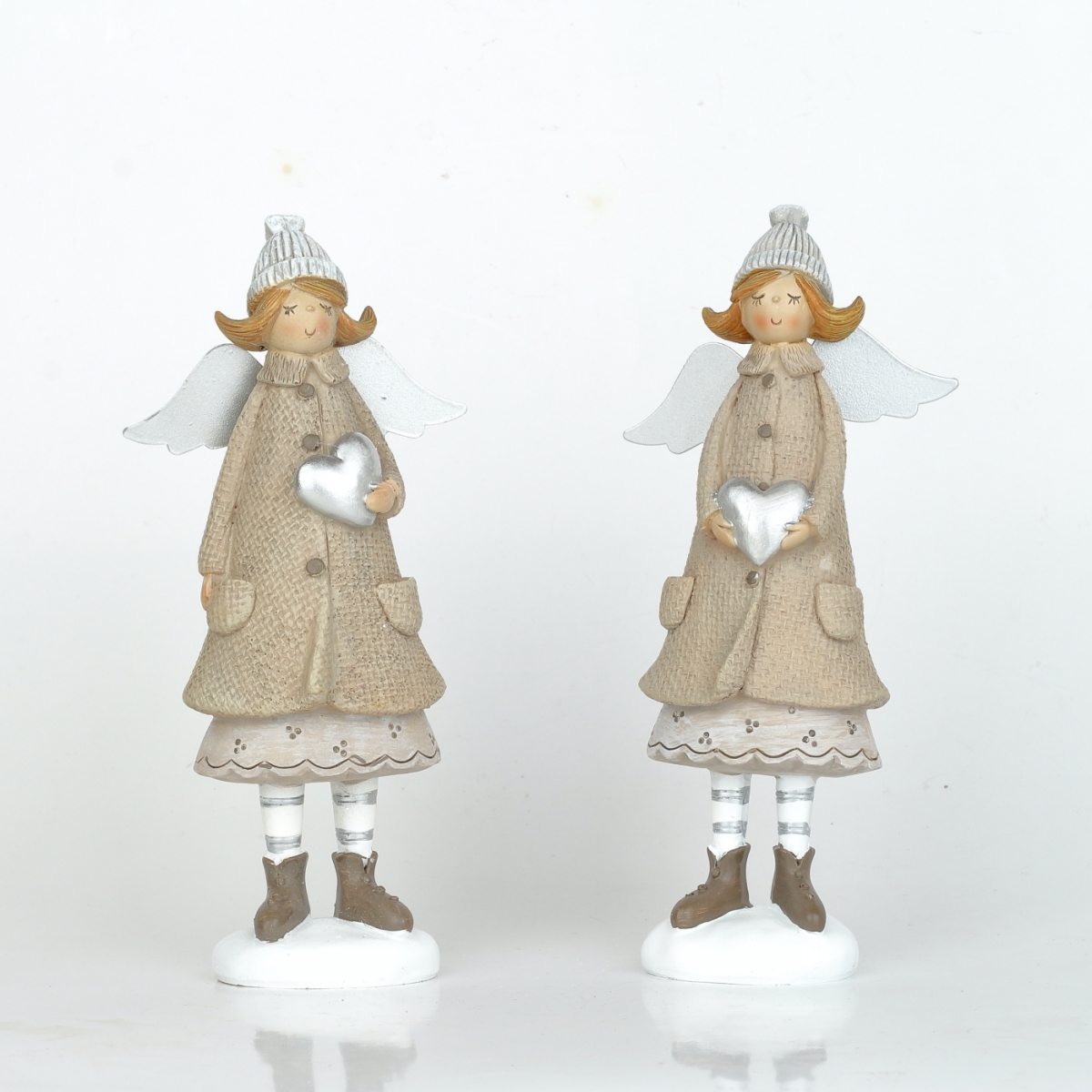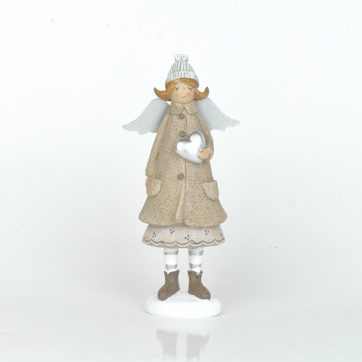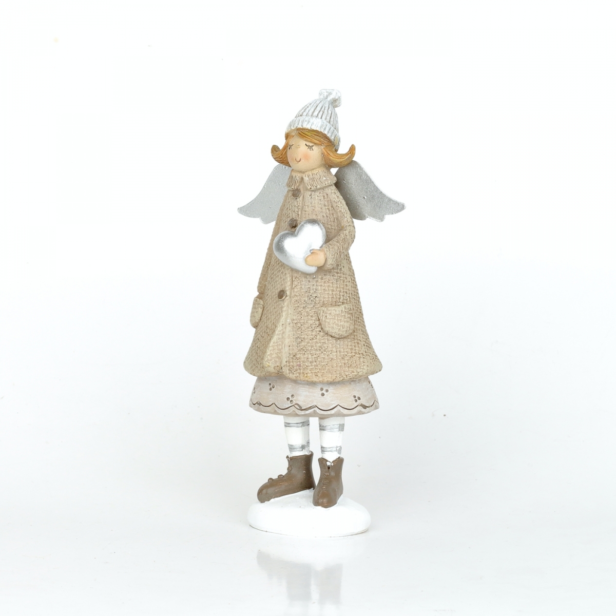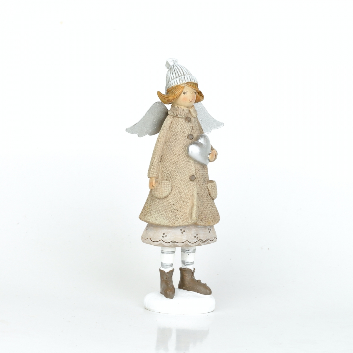 Andělka je ručně malovaná soška holčičky s křídly, v pleteném kulichu a zimním kabátku.