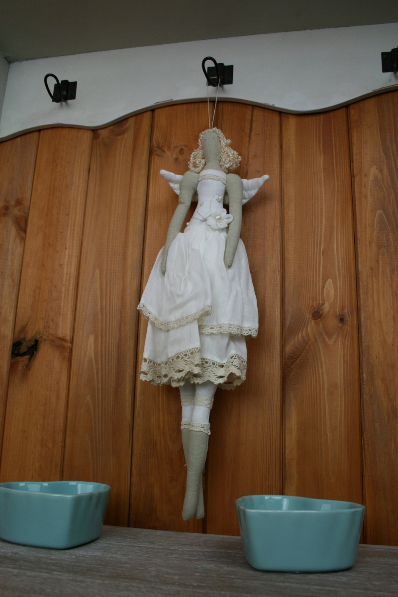 Tato krásná andělka je určena pro zavěšení na háček či jako ozdoba skříně nebo dveří.