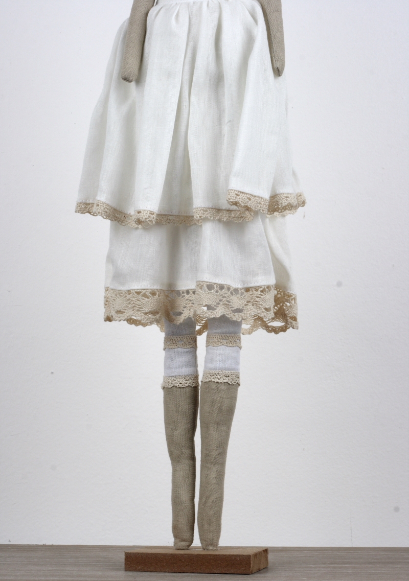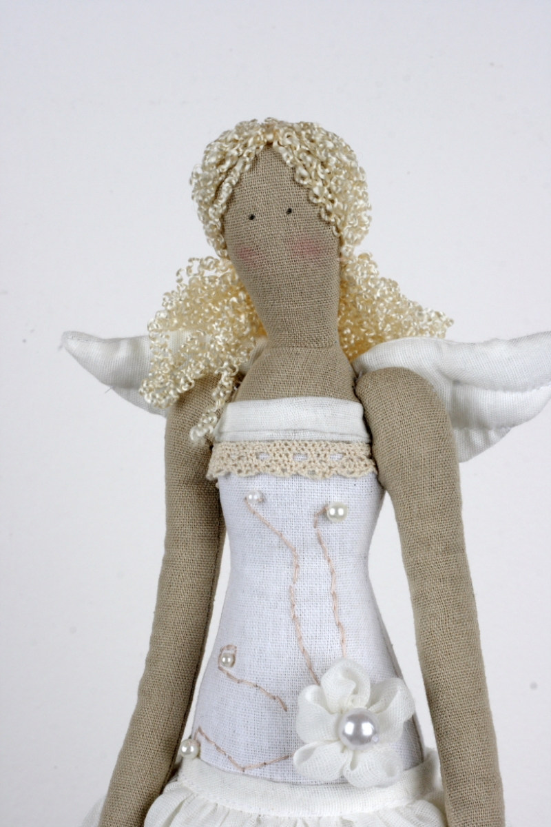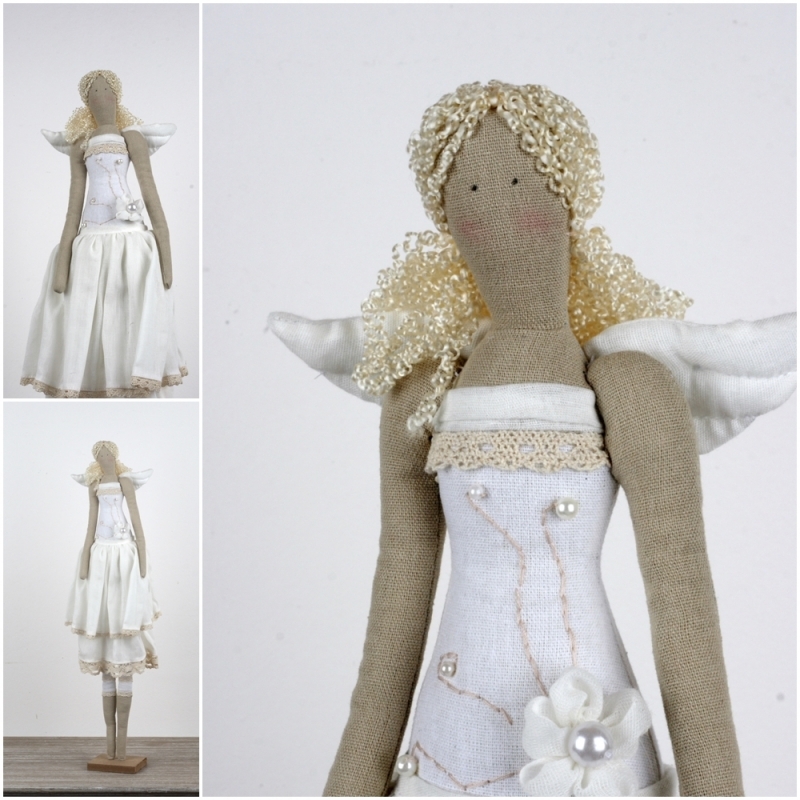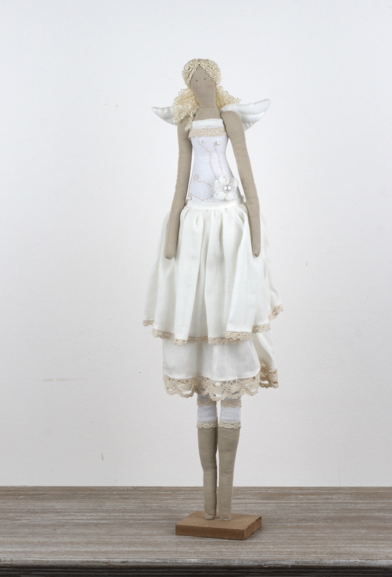 Andělka v bílých a smetanových tónech je připevněna na podstavci.