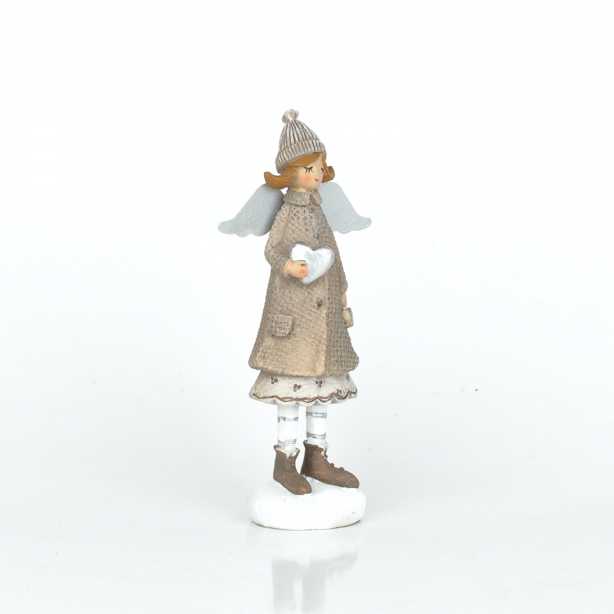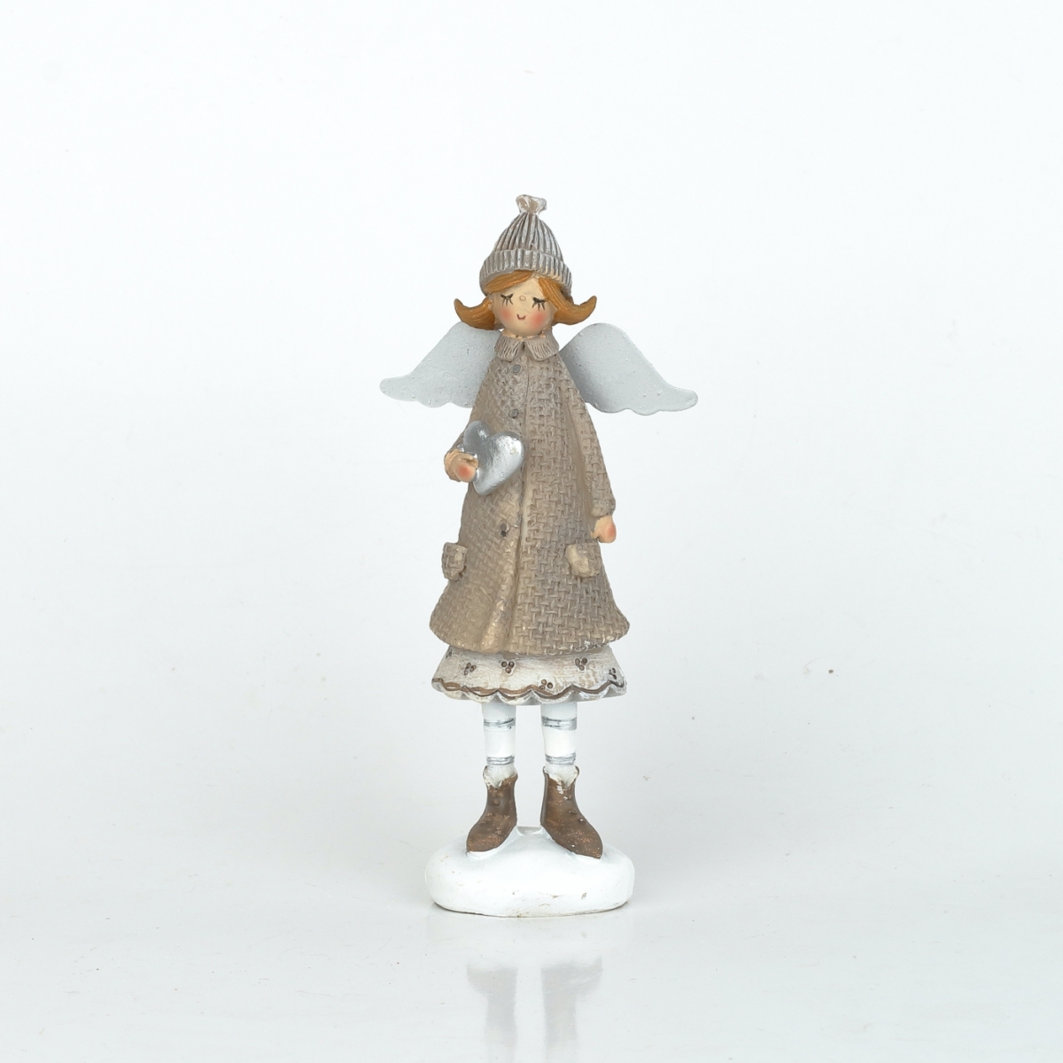 Andělka je ručně malovaná soška holčičky s křídly, v pleteném kulichu a zimním kabátku.