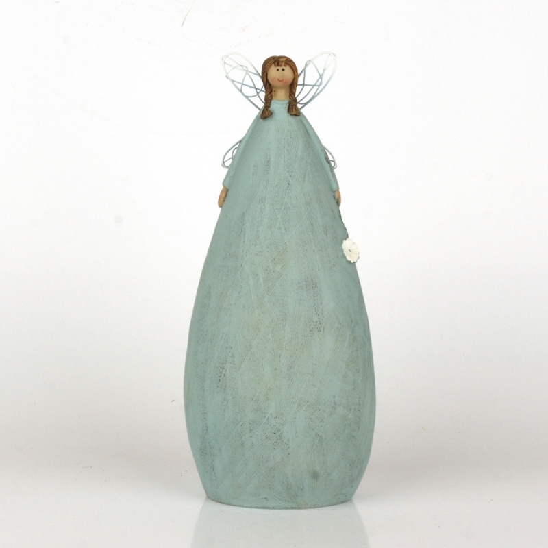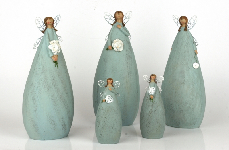 Anděl v dlouhých modrých šatech s jemným třpytem bude střežit váš domov ve dne v noci. Drží v rukou kytici kopretin a patří do kolekce plné kouelných bytostí. V kategorii naleznete sošky v různých velikostech i barvách.