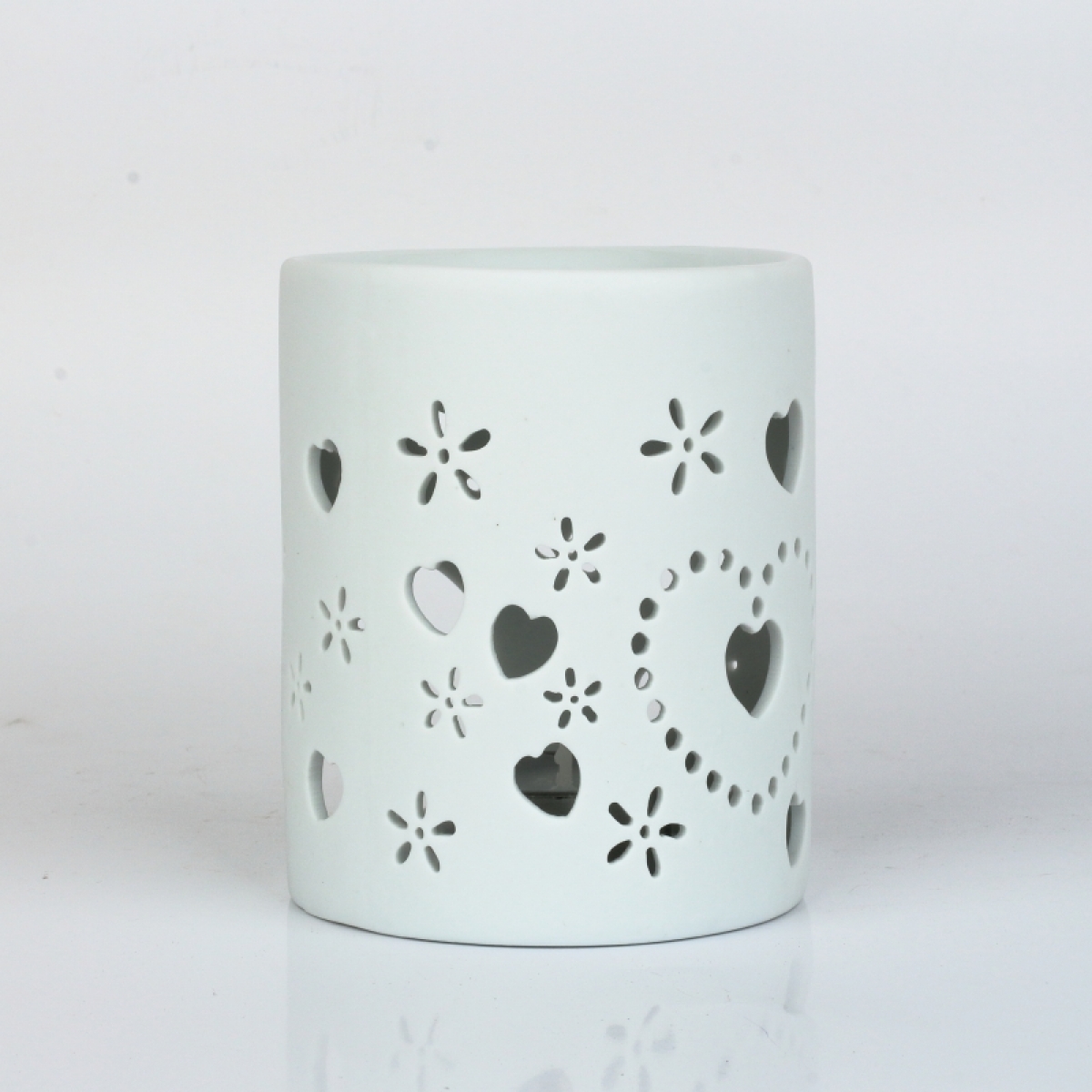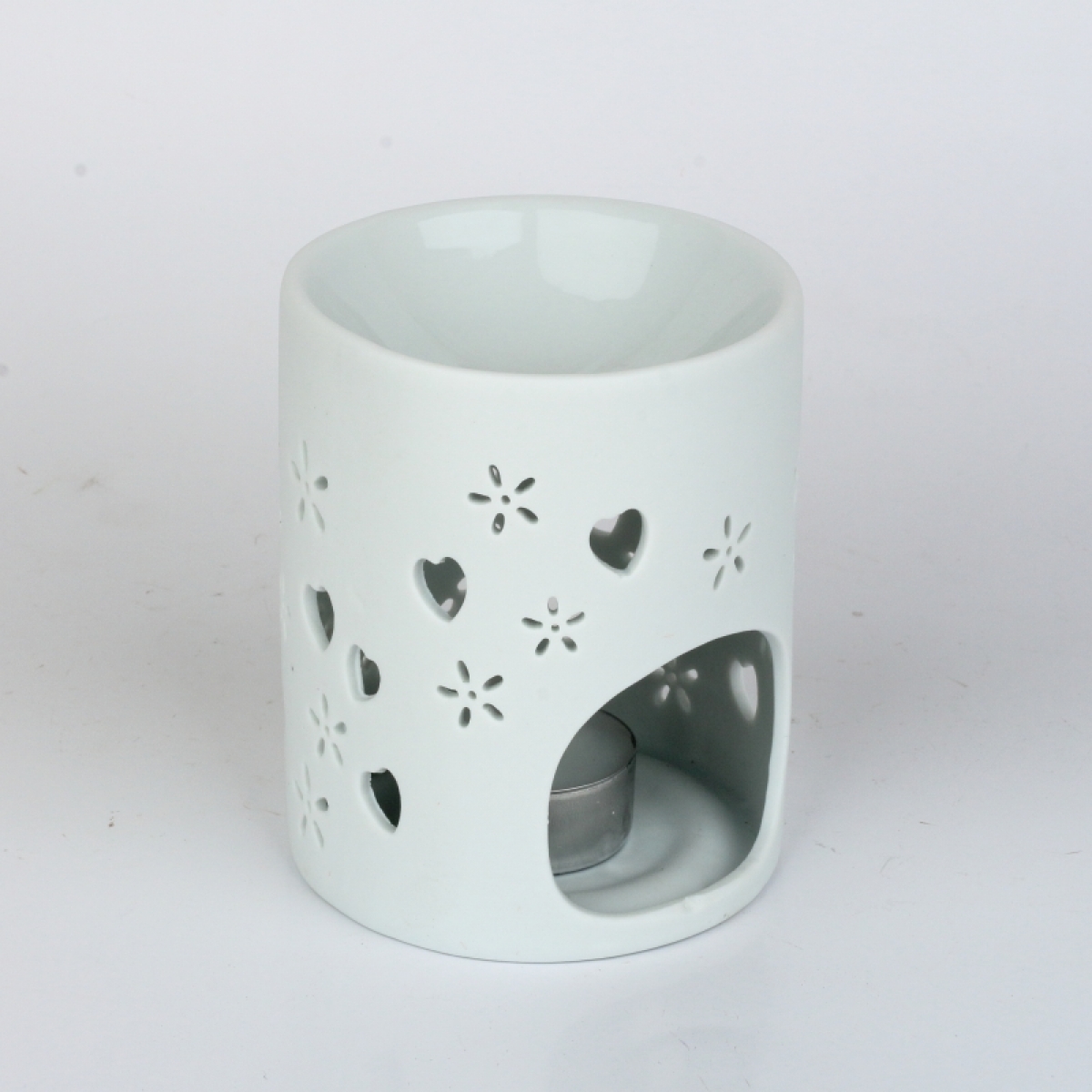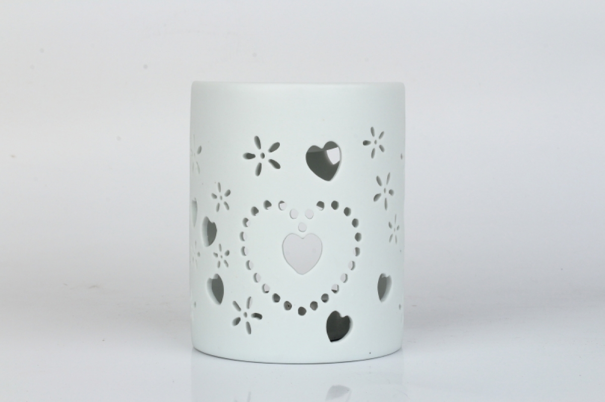 Aromalampa bílá porcelánová se srdíčkem a kytičkou 8,5x10x8,5cm.