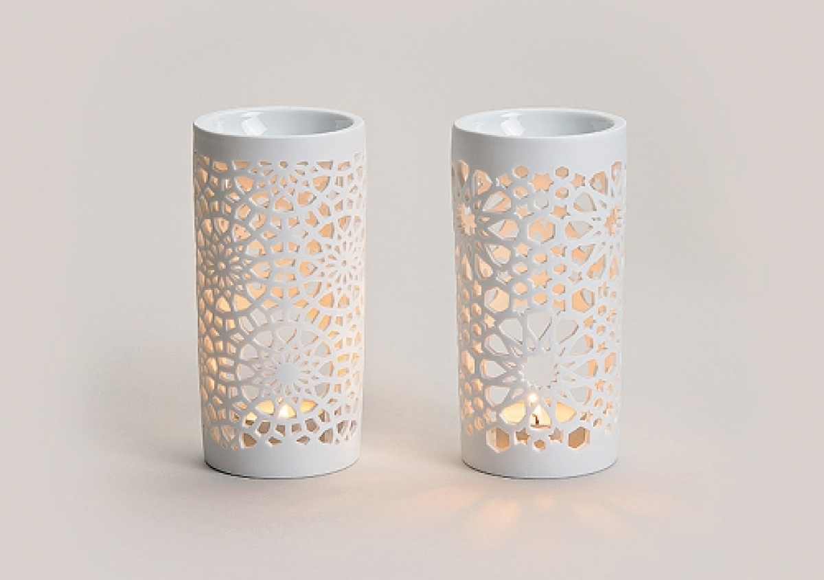 Bílá aromalampa na čajovou svíčku, zdobená ornamenty. Provoní Váš dům a zároveň tvoří krásnou bytovou dekoraci.