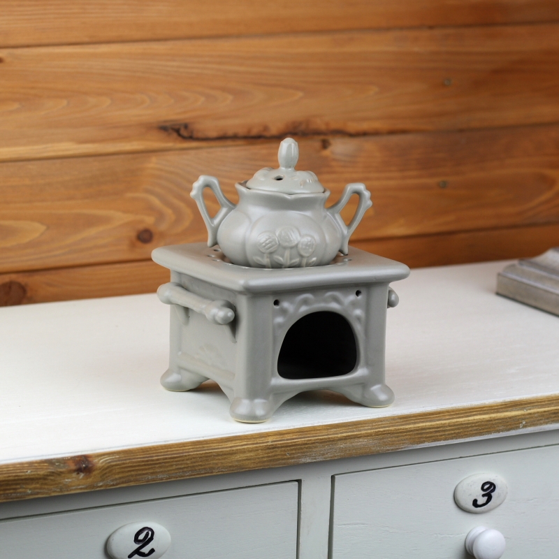 Aromalampa keramická kamna šedá 13x12x17cm provoní Váš dům a zároveň tvoří originální bytovou dekoraci.