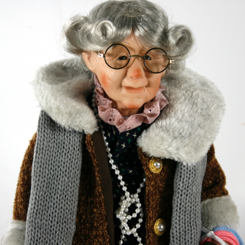Porcelánová babička je dáma, která o sebe pečuje. Její stříbrné vlasy jsou pečlivě naondulované a načesané do slušivého účesu.
