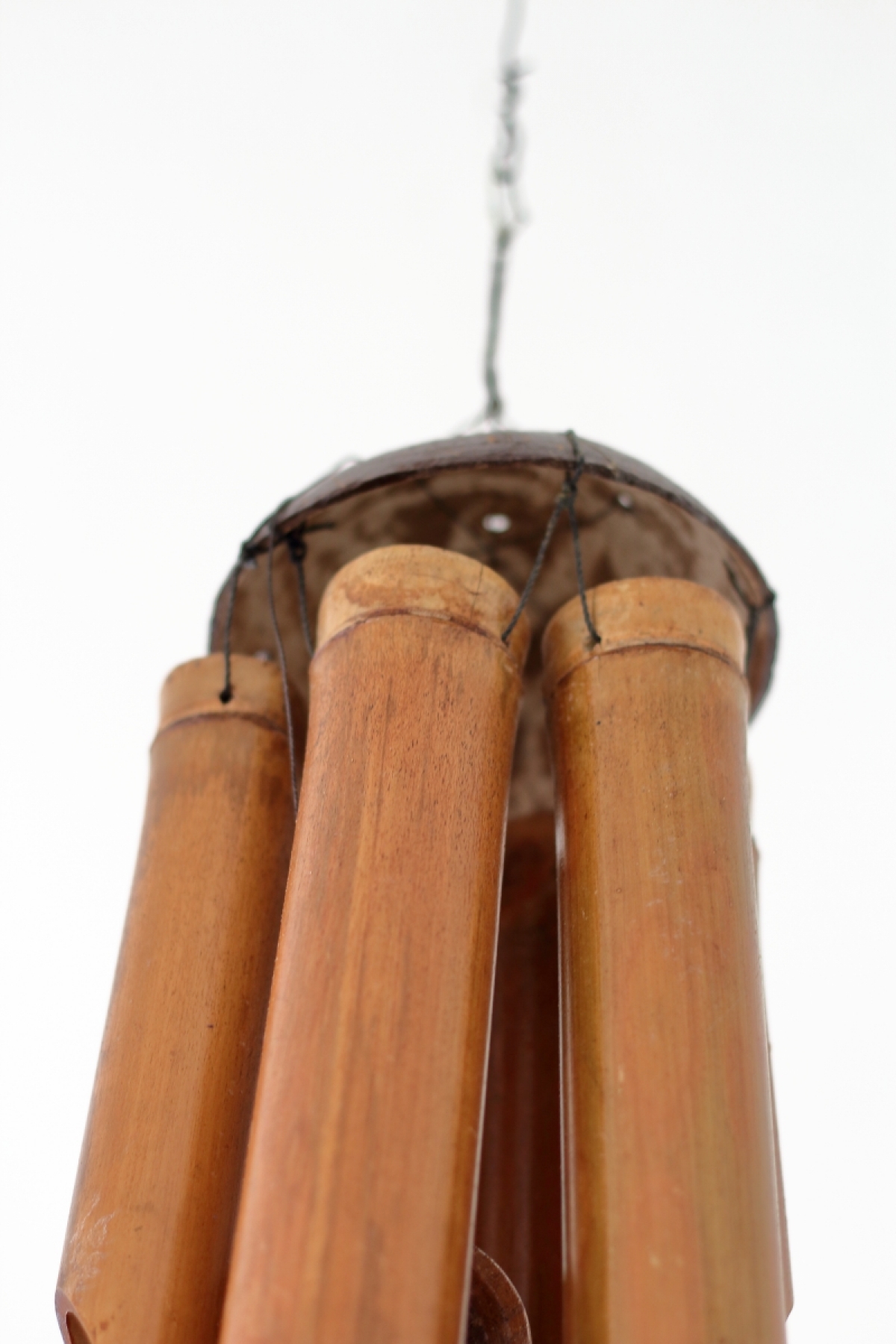 Ručně vyráběná bambusová zvonkohra z kokosového ořechu a bambusových dílů.