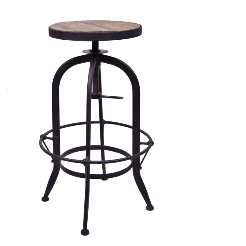 Barová židle má sedák z recyklovaného dřeva, které nechává vyniknout krásu pórů a struktury dřeva. Kovová masivní konstrukce v černé barvě, polohování výška sedáku zajišťuje páčka na spodní straně.