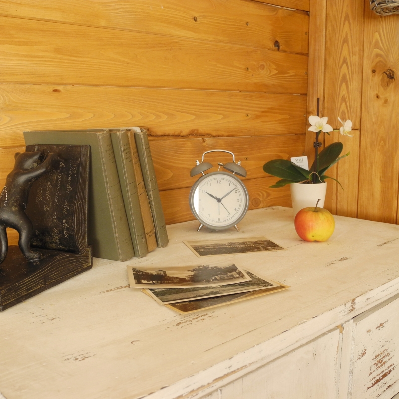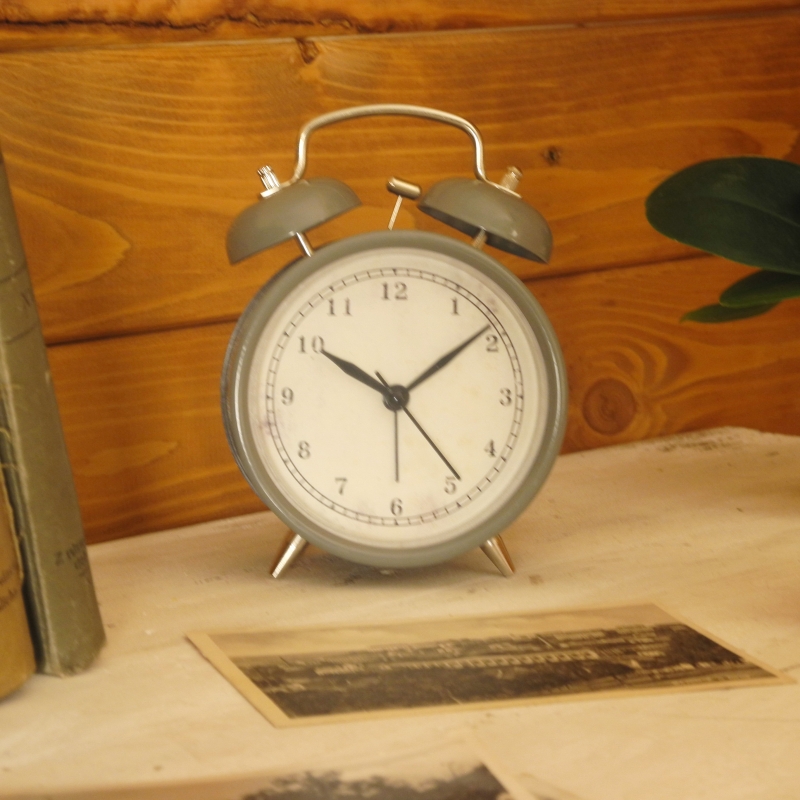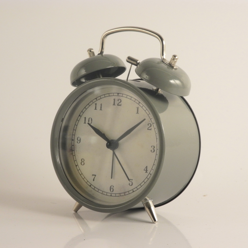 Budík kovový s kovadlinkou dosahuje celkové výšky 16 cm, jeho hloubka je 6 cm. Průměr v přední části je 10 cm, v zadní části 11,5 cm. Budík je dodávání s šedivě stříbrným pláštěm.
