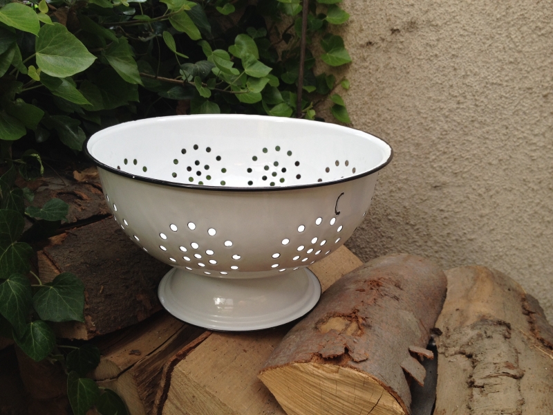 Cedník z bílého smaltu - vyřazeno II. Bez ucha