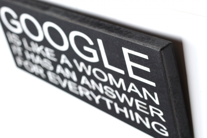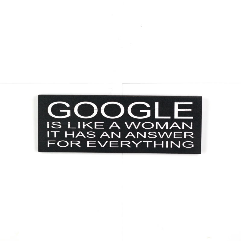 Cedule Google is like a woman 40x14cm Vás zaručeně pobaví!