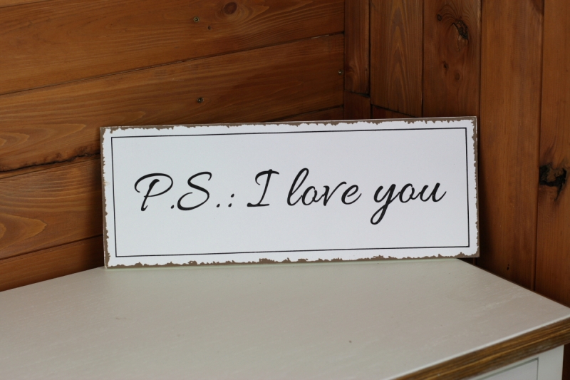Cedulka s milým nápisem P.S.: I love you je skvělým dárkem pro Vaši drahou polovičku. Jistě nejenom potěší, ale bude i krásnou dekorací pokoje či kanceláře.
