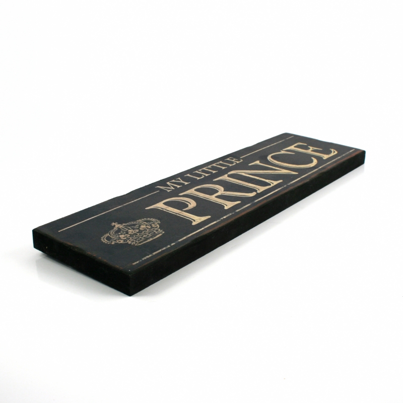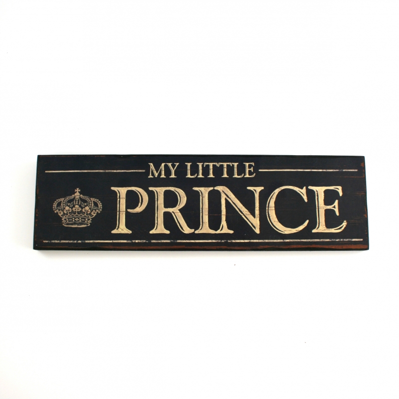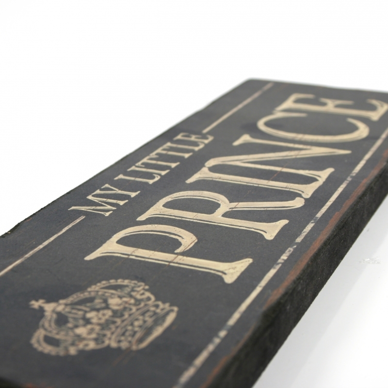 Cedule My little Prince je vyrobená ze dřeva a je opatřená černým a béžovým nátěrem. Zdobí ji anglický nápis a motiv královské korunky.