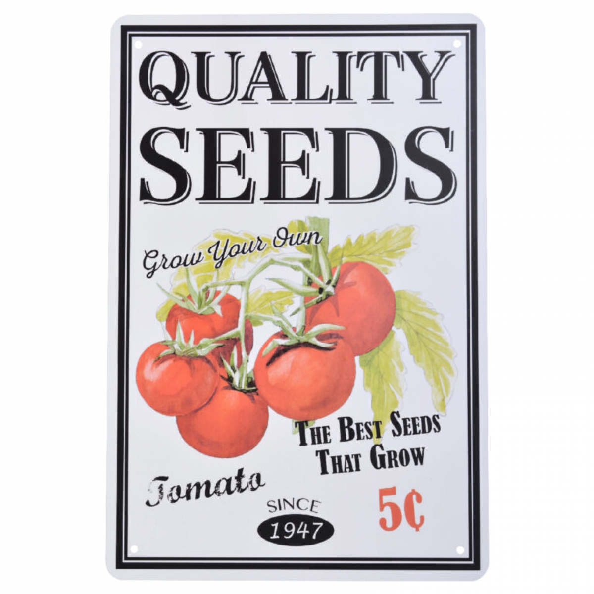 Cedule plechová s reklamou na prodej semínek rajčat , je vhodnou dekorací například do kuchyně, jídelny nebo přímo pro farmáře a prodejce .