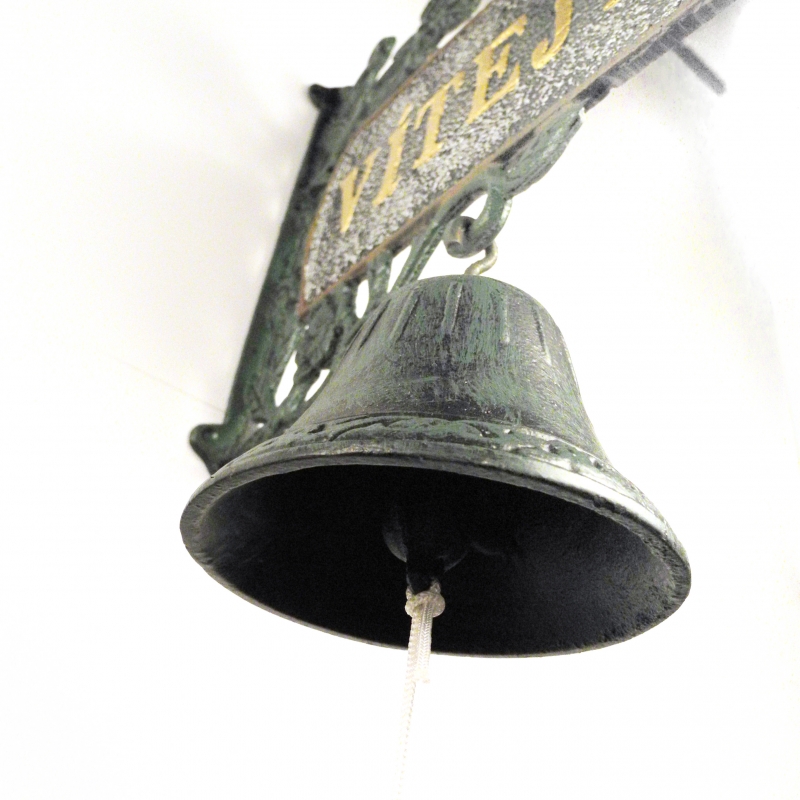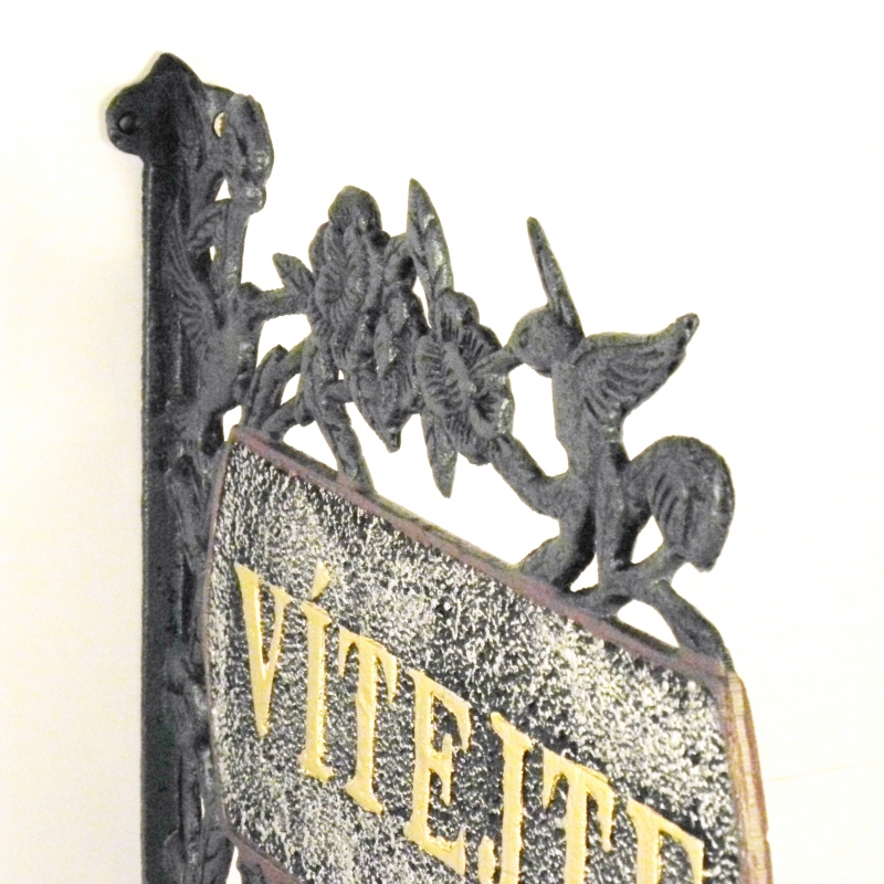 Cedule vítejte + litinový zvonek, s uvítací litinovou tabulkou.
