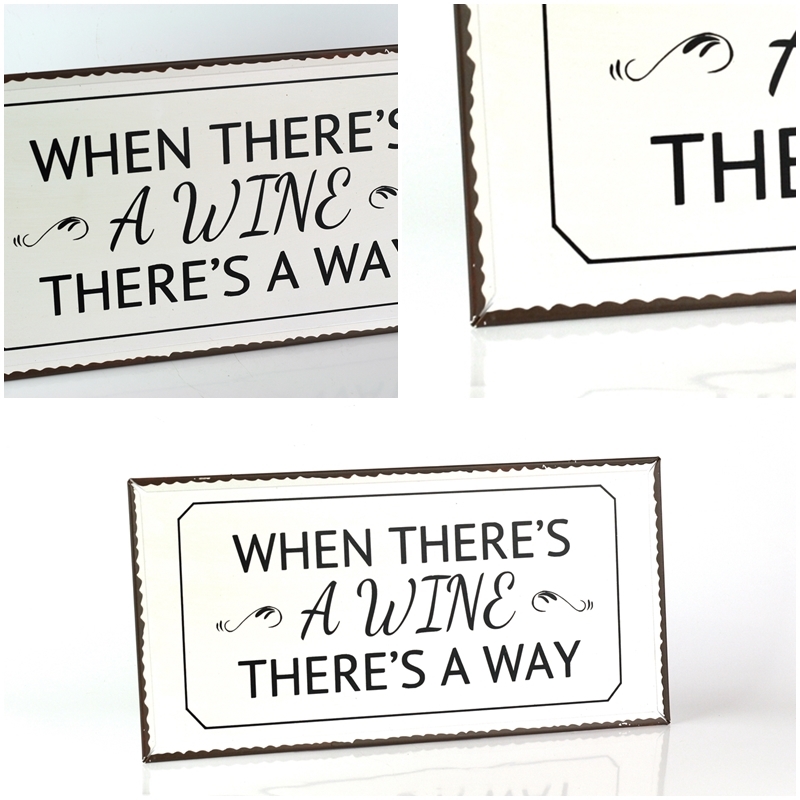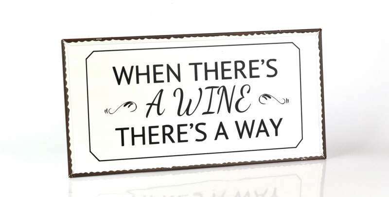 Cedule When theres wine 40x20cm je dalším kouskem ze setu plechových cedulí, které se týkají dobrého vína. Na této je napsáno "Když je víno, je i cesta".
