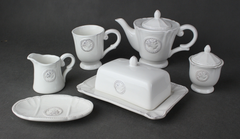 Cukřenka patří do sady kuchyňských doplňků, ve které naleznete navíc konvičku na mléko, máselničku, hrníčky a konvičku na čaj. Můžete se tak vybrat co potřebujete, ale vybrané kousky Vám budou stále pěkně ladit.
