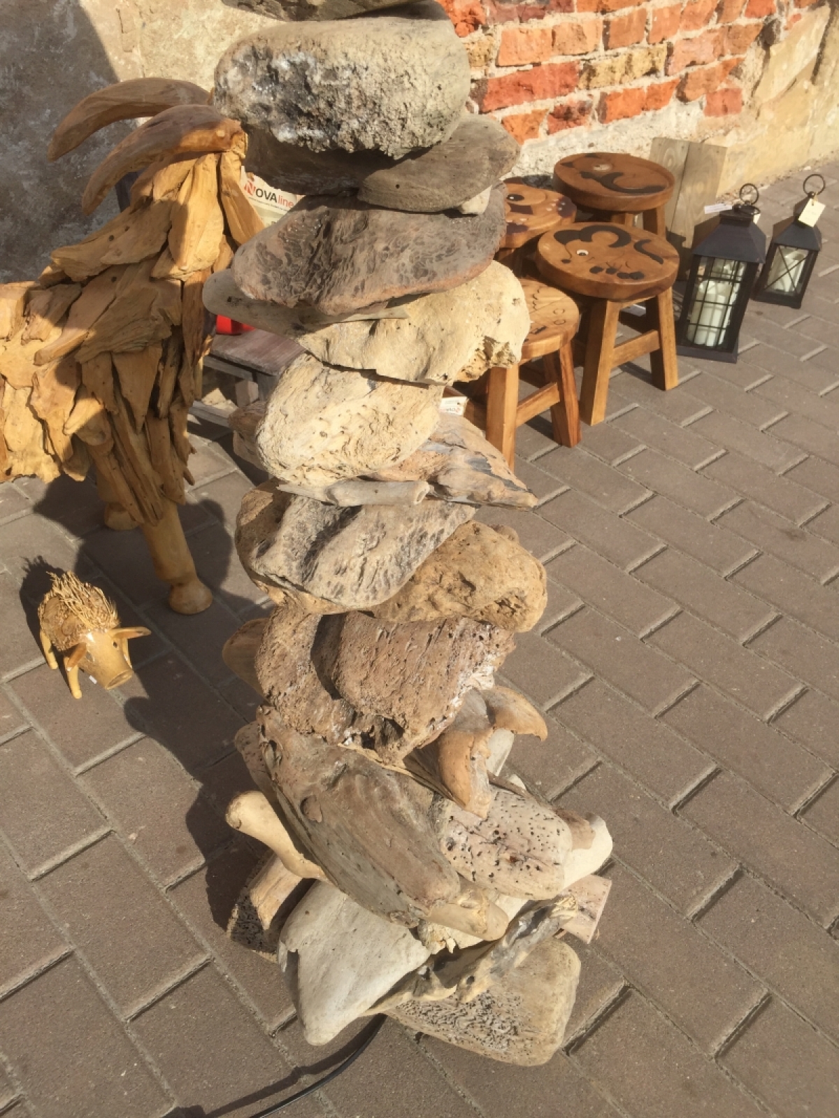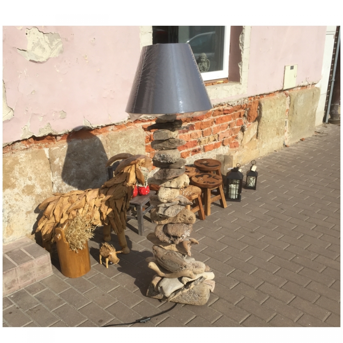 Každý kus stojací lampy je vyráběn ručně z pečlivě vybraných kousků náplavového dřeva.