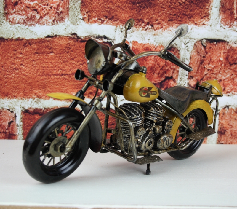 Retro model je celokovový, je propracován do nejmenších detailů a bude ozdobou každé police či komody. Motorka má žlutou barvu.