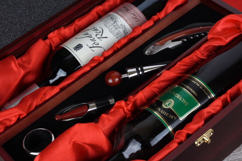 Mezi místem na láhve je umístěn čtyřdílný vinný set.