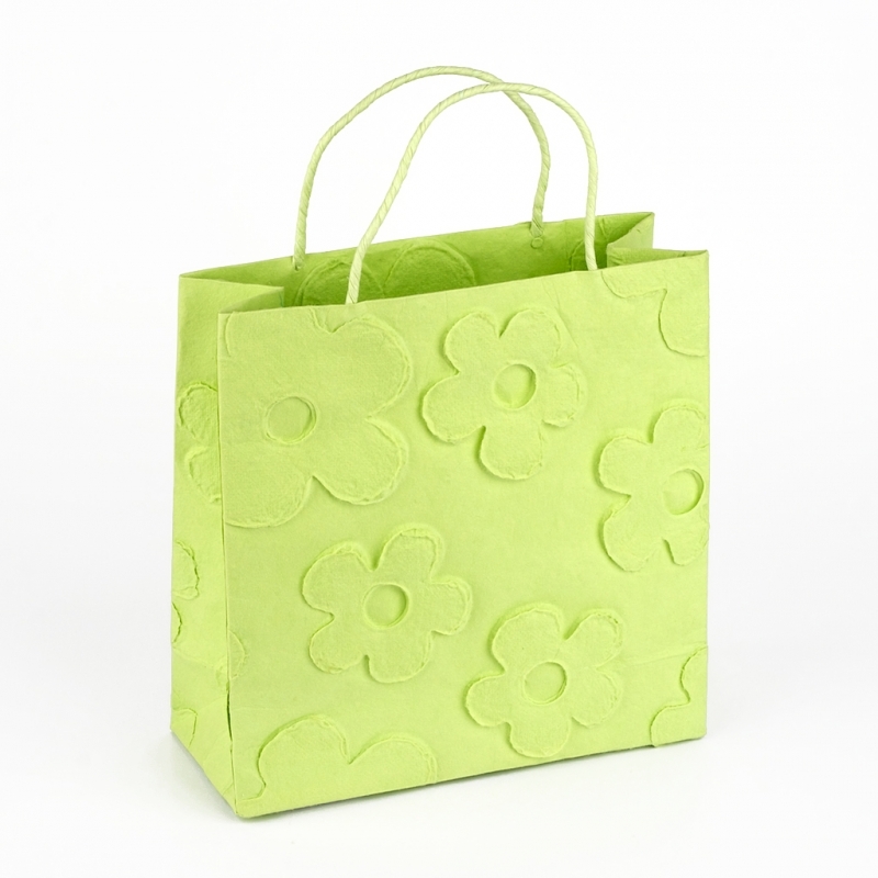 Dárková taška zelená s květinami 20x20cm je snadným a praktickým řešením, jak si poradit se zabalením dárku.