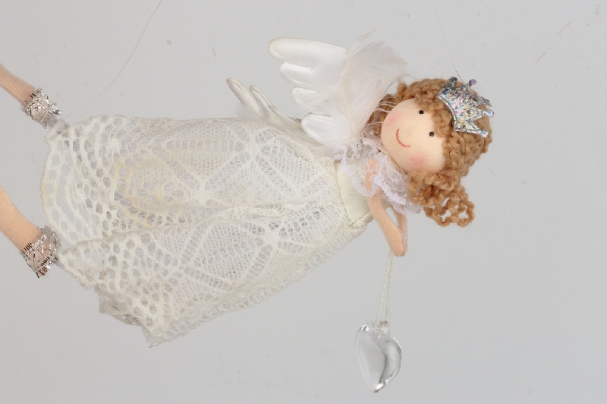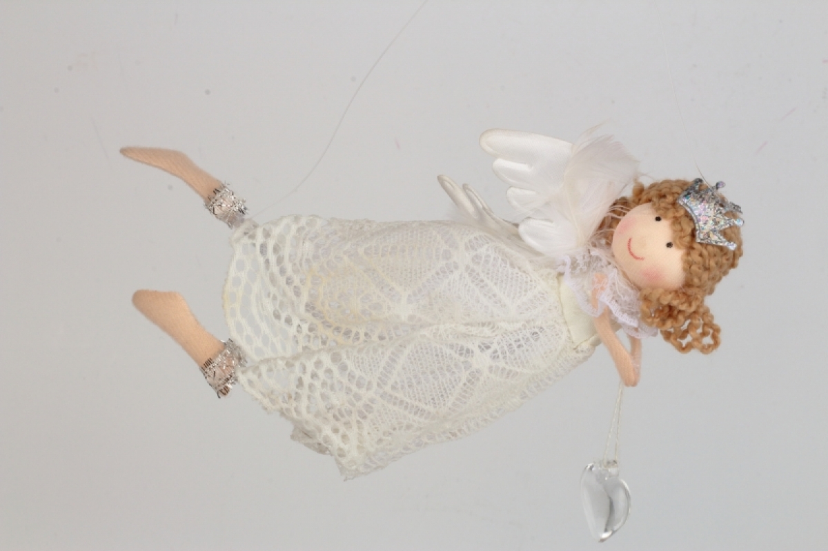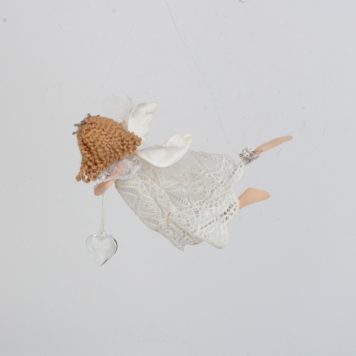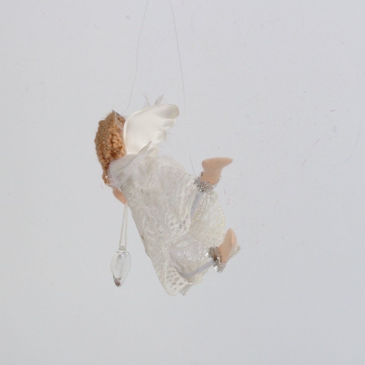 Dekorace anděl s názvem Judita je vyráběz ze záclonoviny, vlny, bavlny a drátků. Celková výška postavy je 18cm.