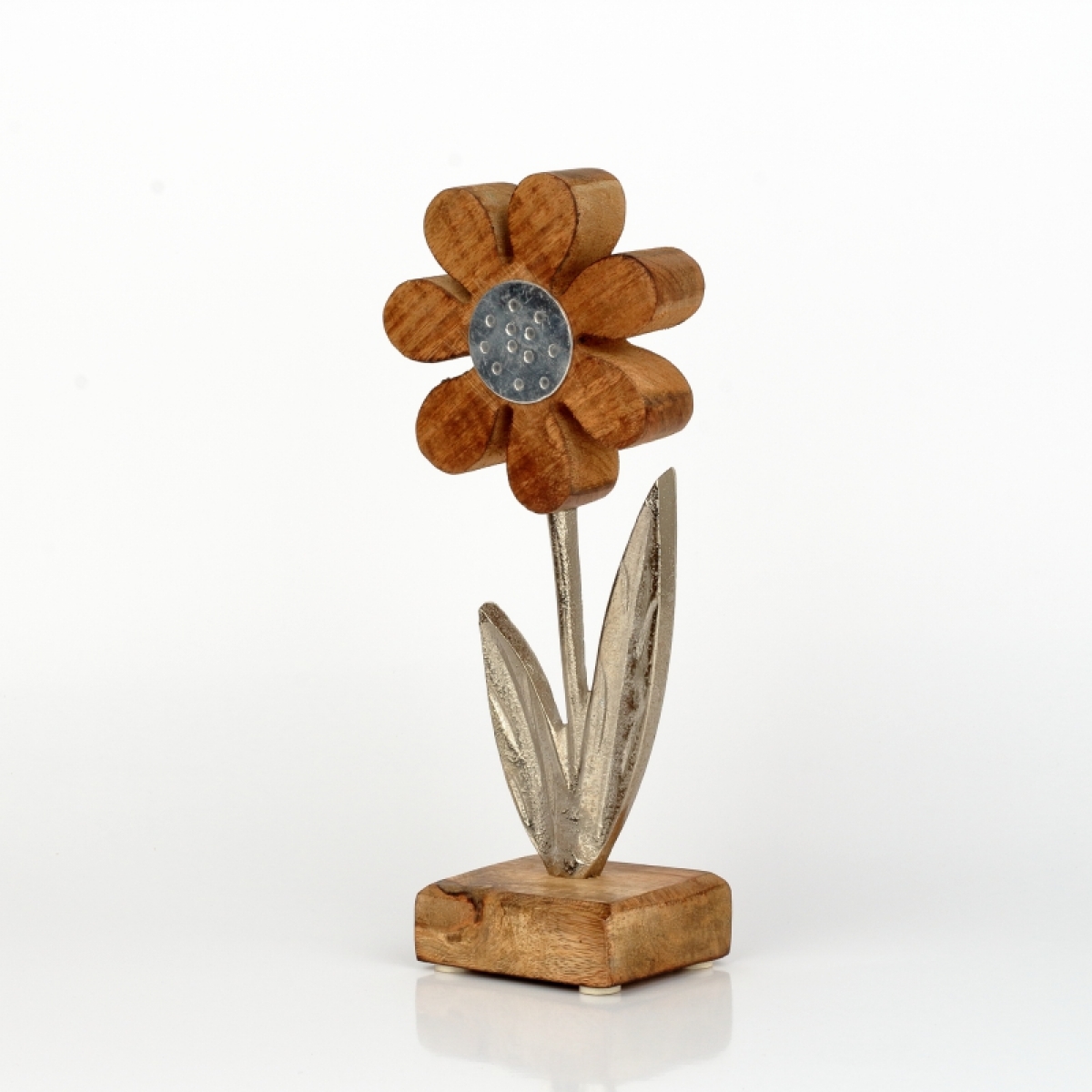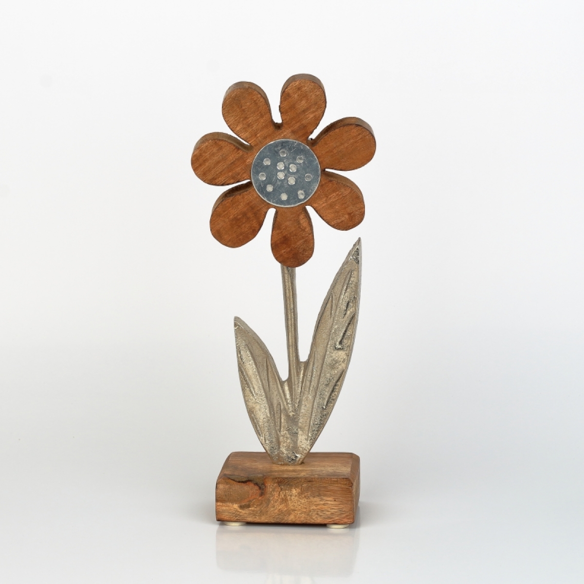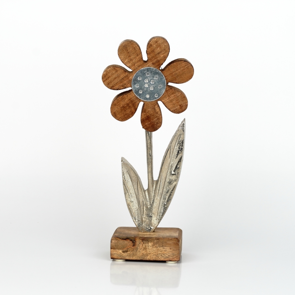Dekorace do bytu květina hliník dřevo 24cm