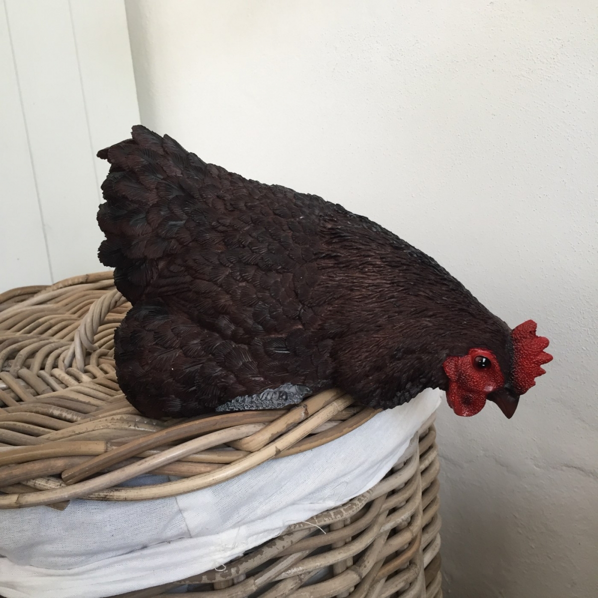 Dekorace do zahrady v podobě klovající slepice, můžete umístit do trávníku i na parapet.