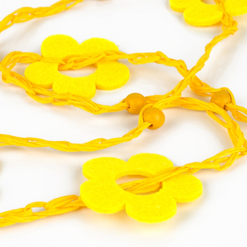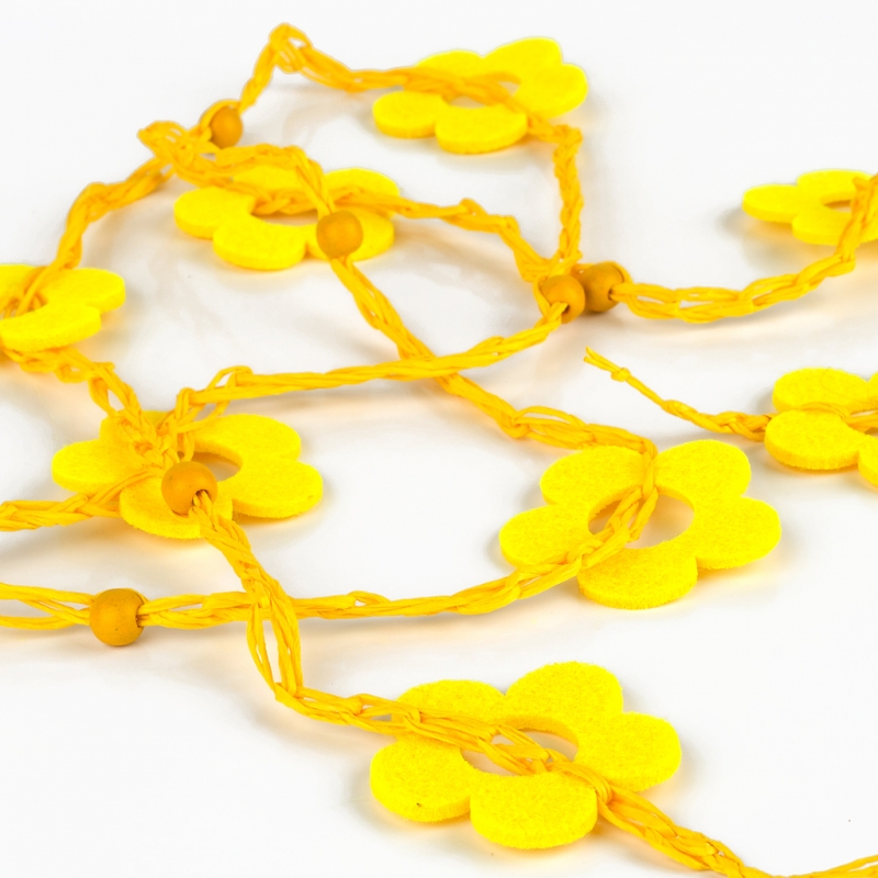 Dekorace girlanda kytka jarní žlutá filcová. Celková délka 150 cm.
