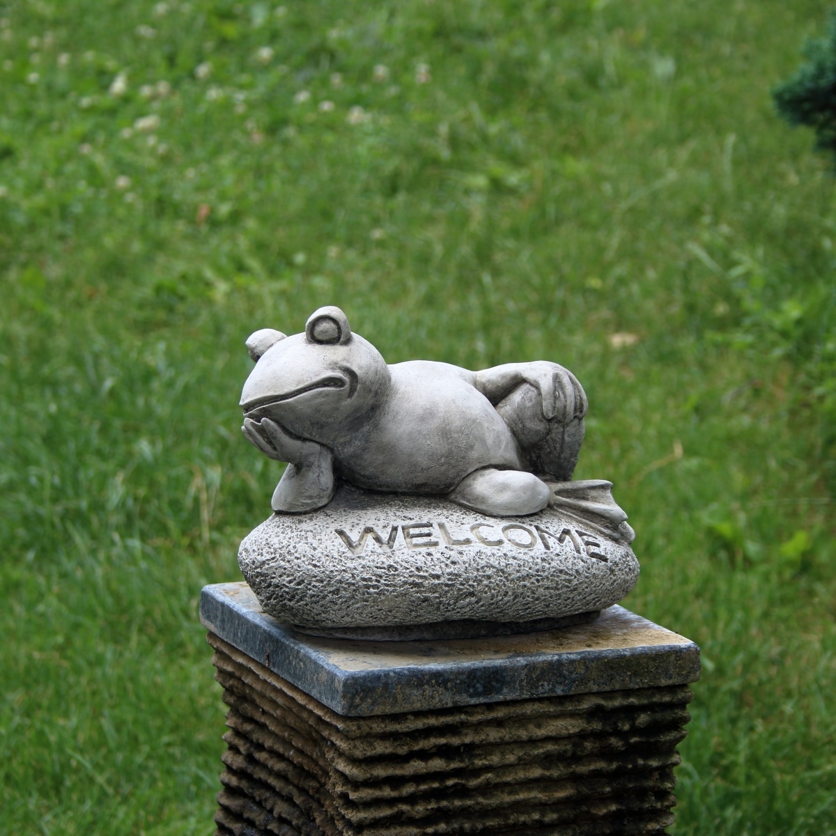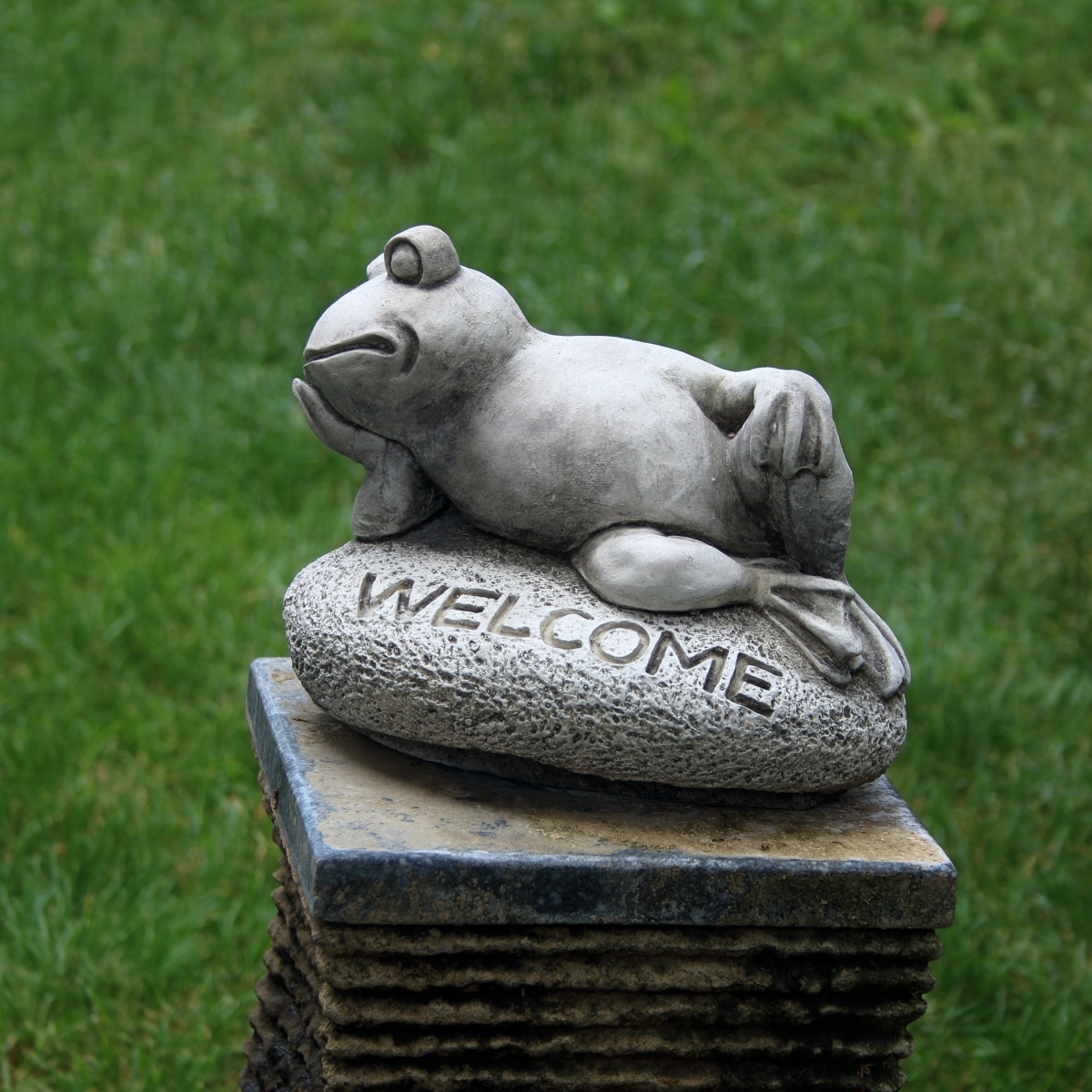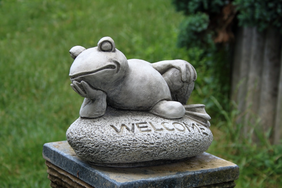 Dekorace k jezírku v podobě žáby s nápisem WELCOME je vyrobená z betonu, takže jí voda rozhodně nevadí! Časem dokonce získá přírodní stylovou patinu.