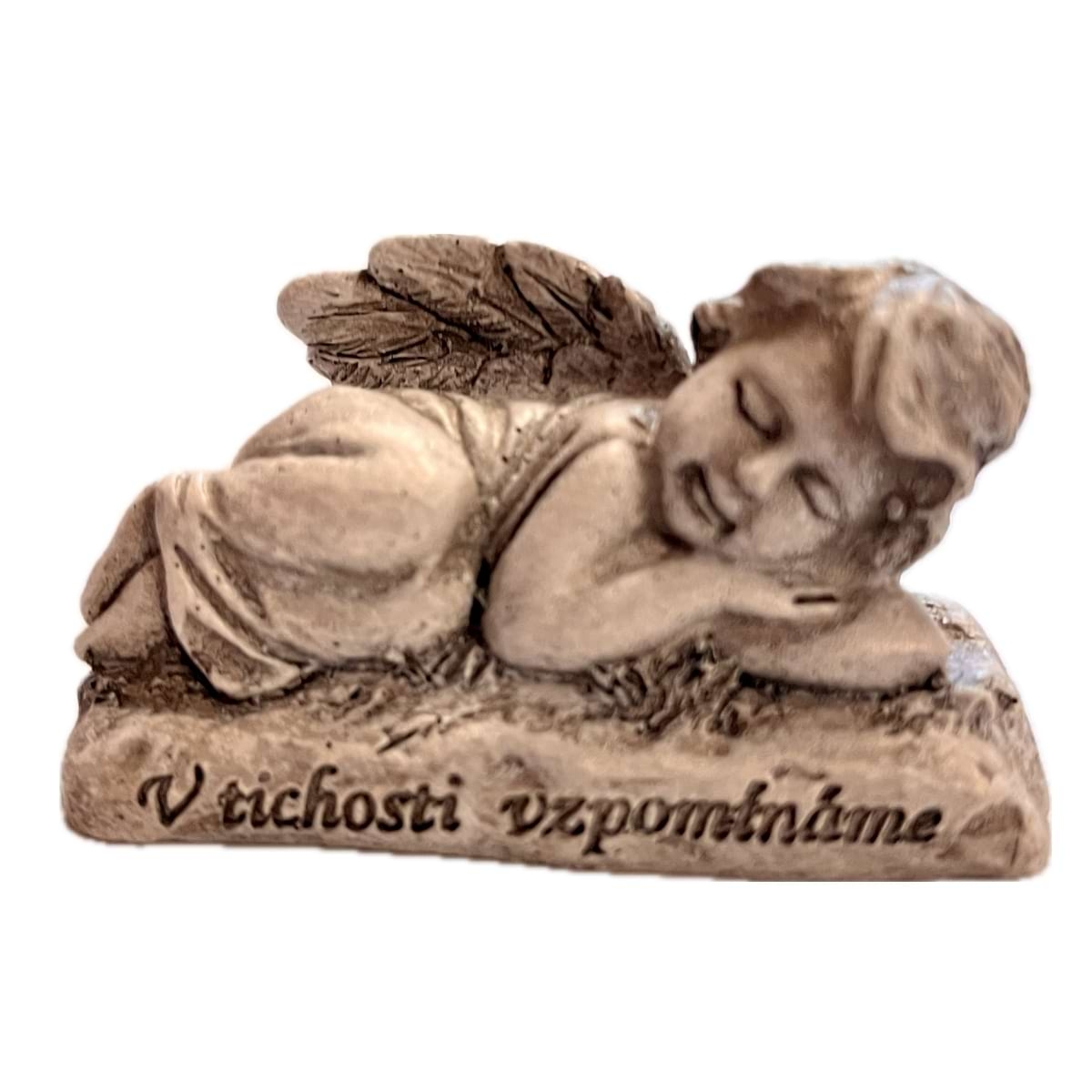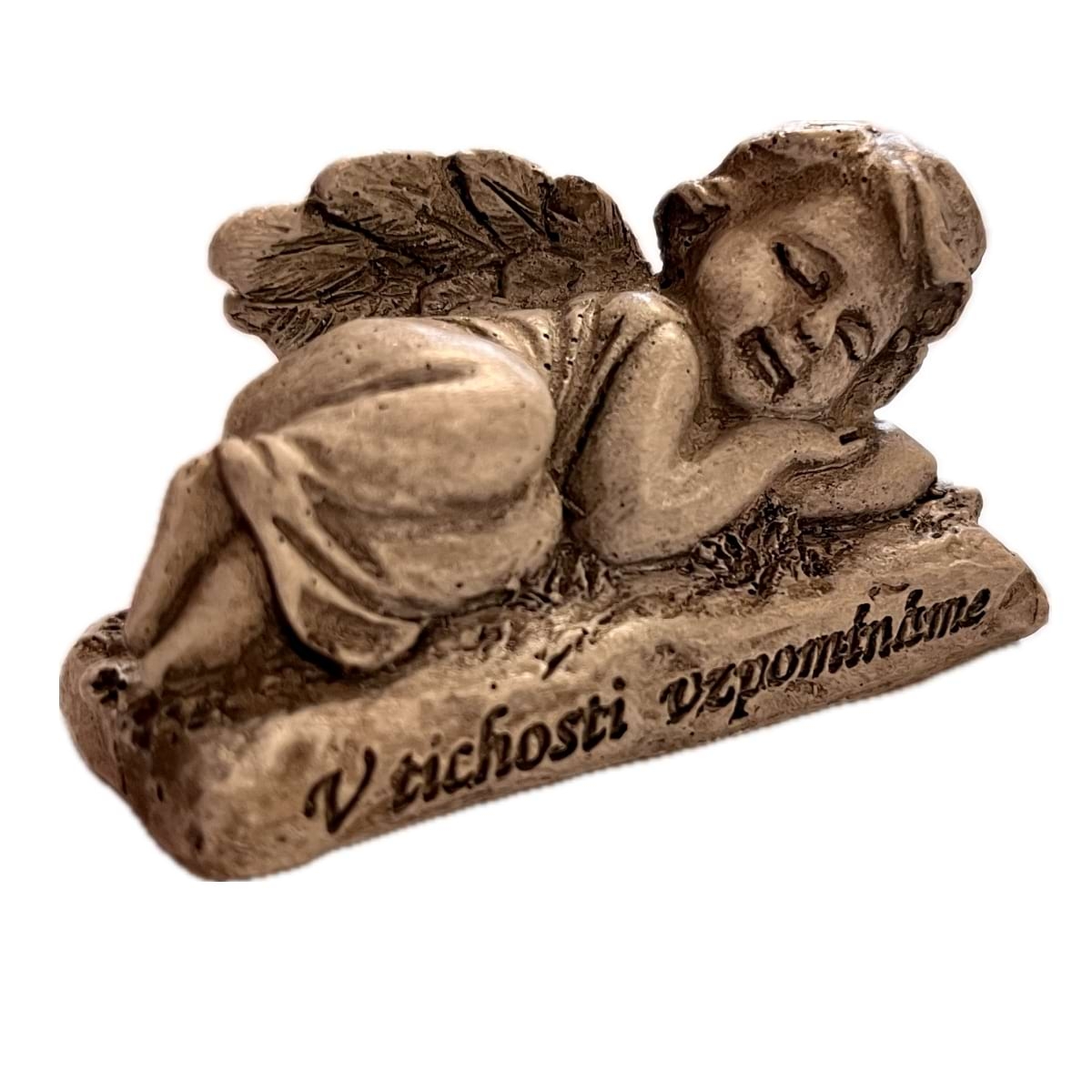 Tento jemný anděl je vyroben z polyresinu a nese nápis „V tichosti vzpomínáme“ — symbol tiché lásky, vzpomínky a úcty k těm, kteří tu už nejsou. Je dostatečně malý a decentní, aby se vešel do kolumbária, položil k fotografii nebo vystavil na hrob, a přitom krásně viditelný jako výraz vašeho citu.