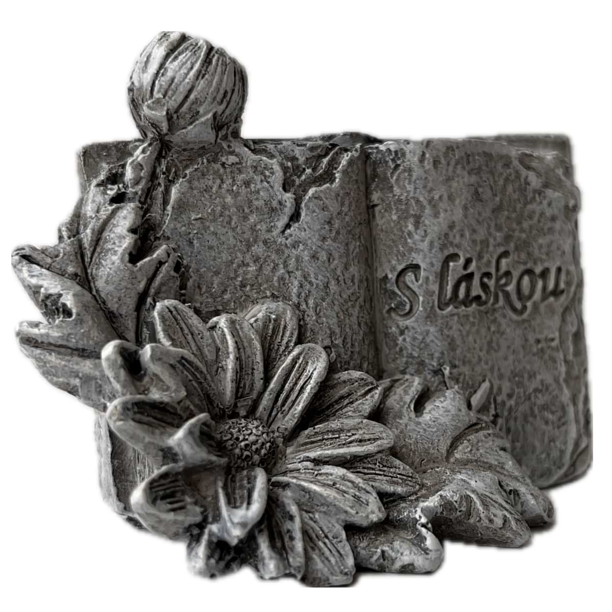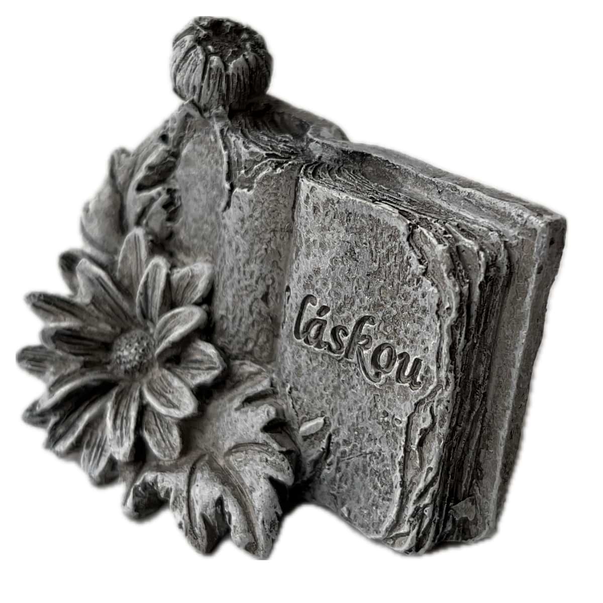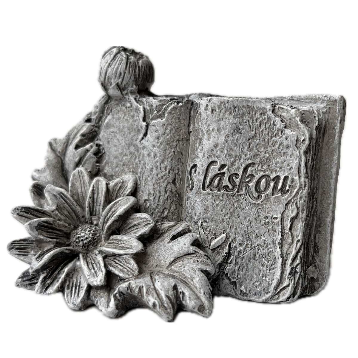 Dekorace na hrob – kniha s květinou S Láskou 5 x 7 x 4 cm