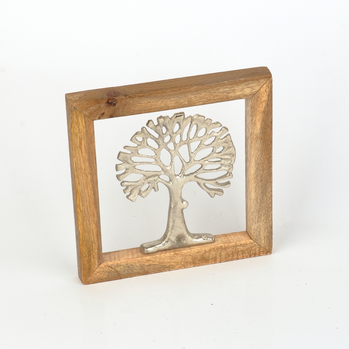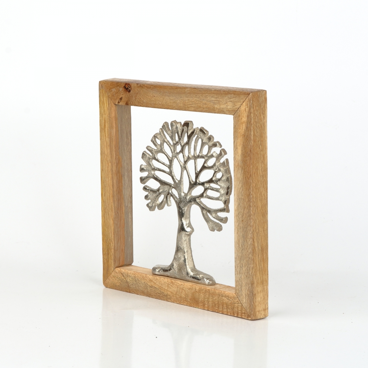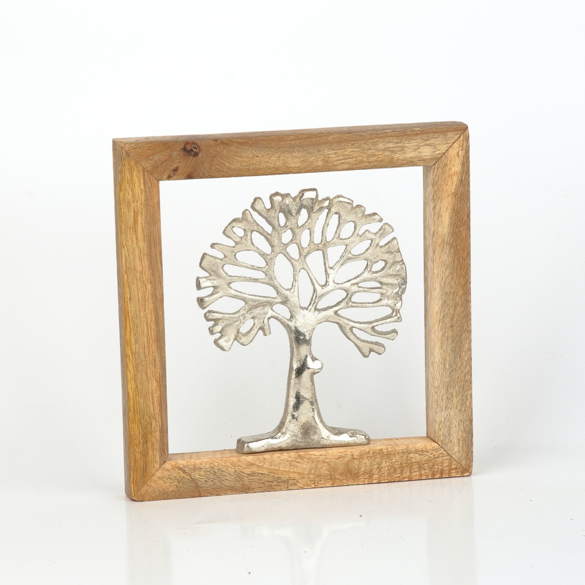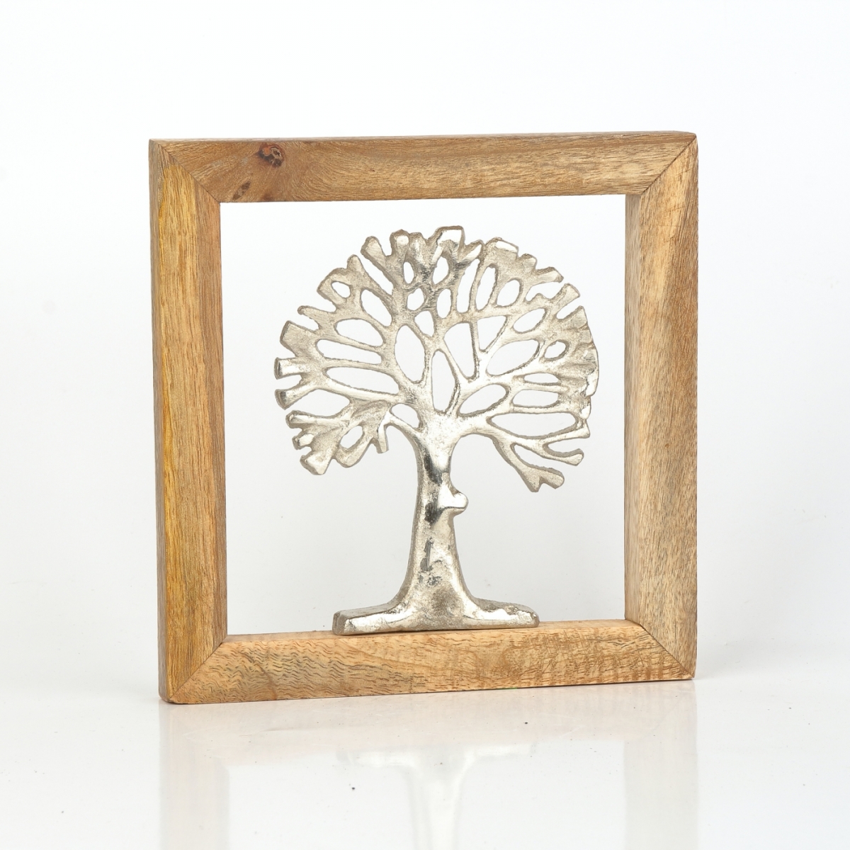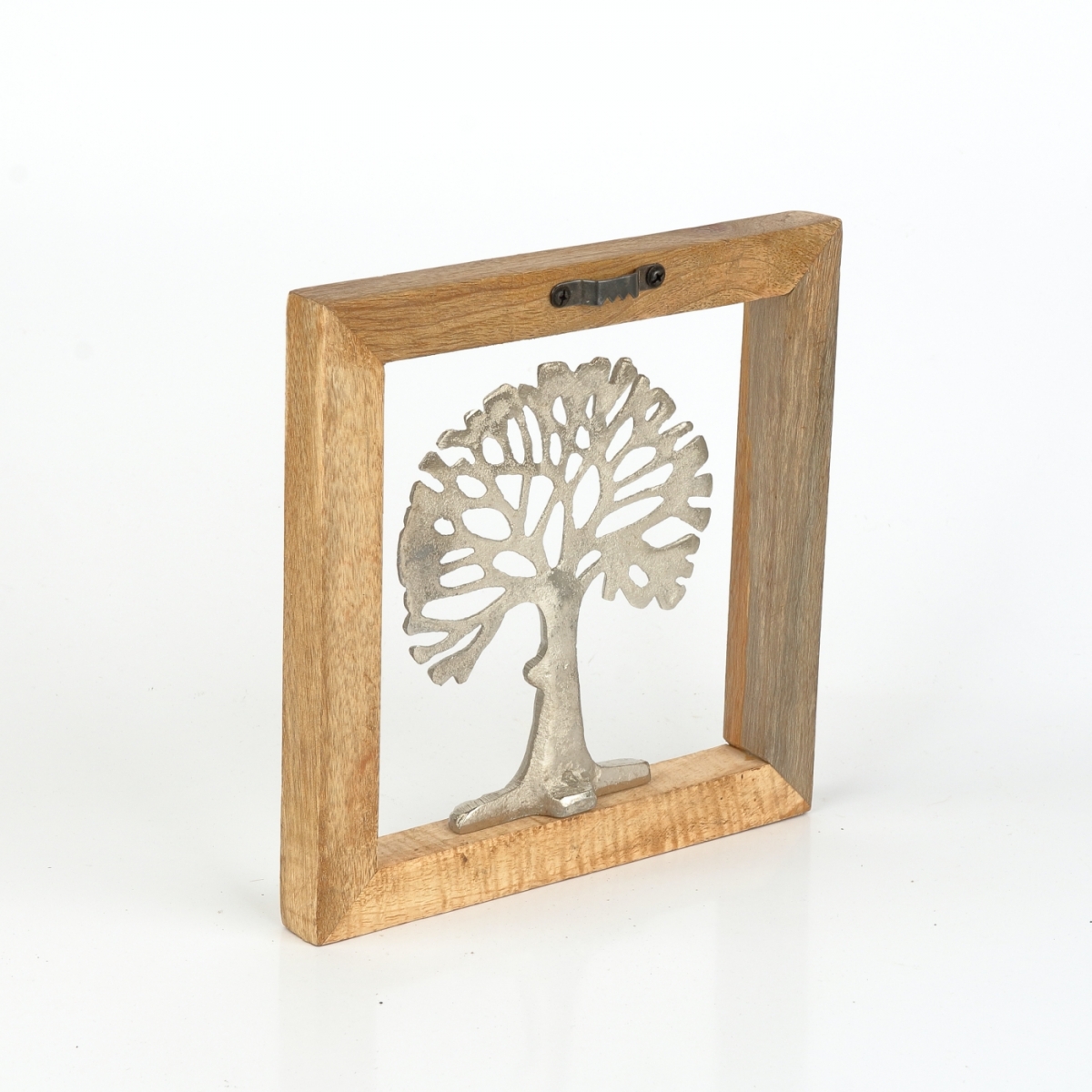 Dekorace na komodu v rámečku ze dřeva. Hliníkovstrom umístěný do dřevěného rámečku, můžete použít jako dekoraci na komodu, v provedení stromu, nebo srdce, ale rámeček je současně opatřen očkem pro zavěšení na stěnu.