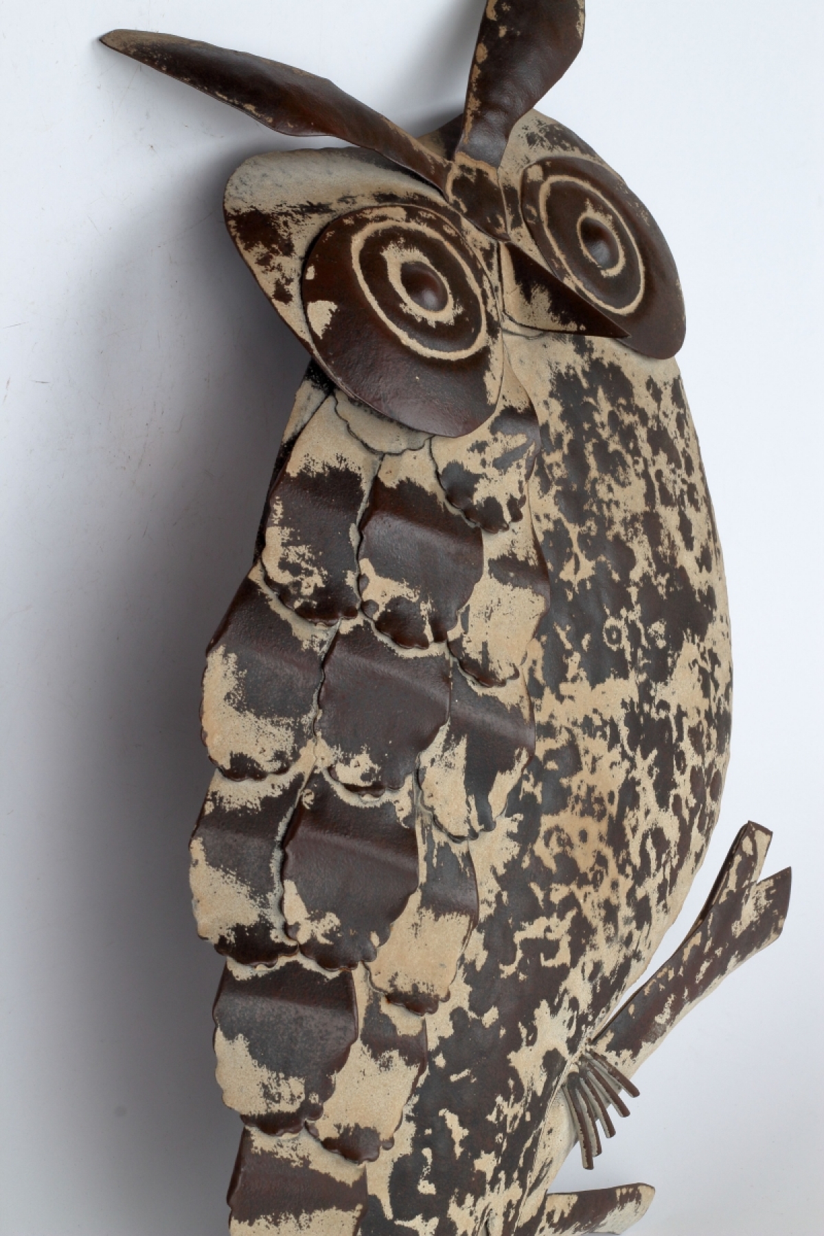 Kovová sova oživí prázdnou stěnu Vašeho domova nebo bude pěkným dárkem pro Vaše blízké.