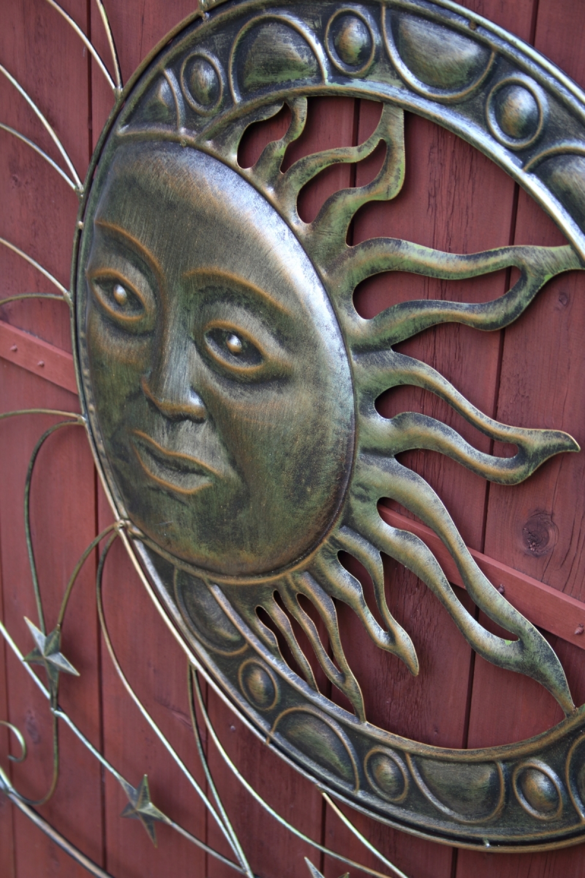 Dekorace slunce z kovu na zeď (se sluncem na pravé straně)
