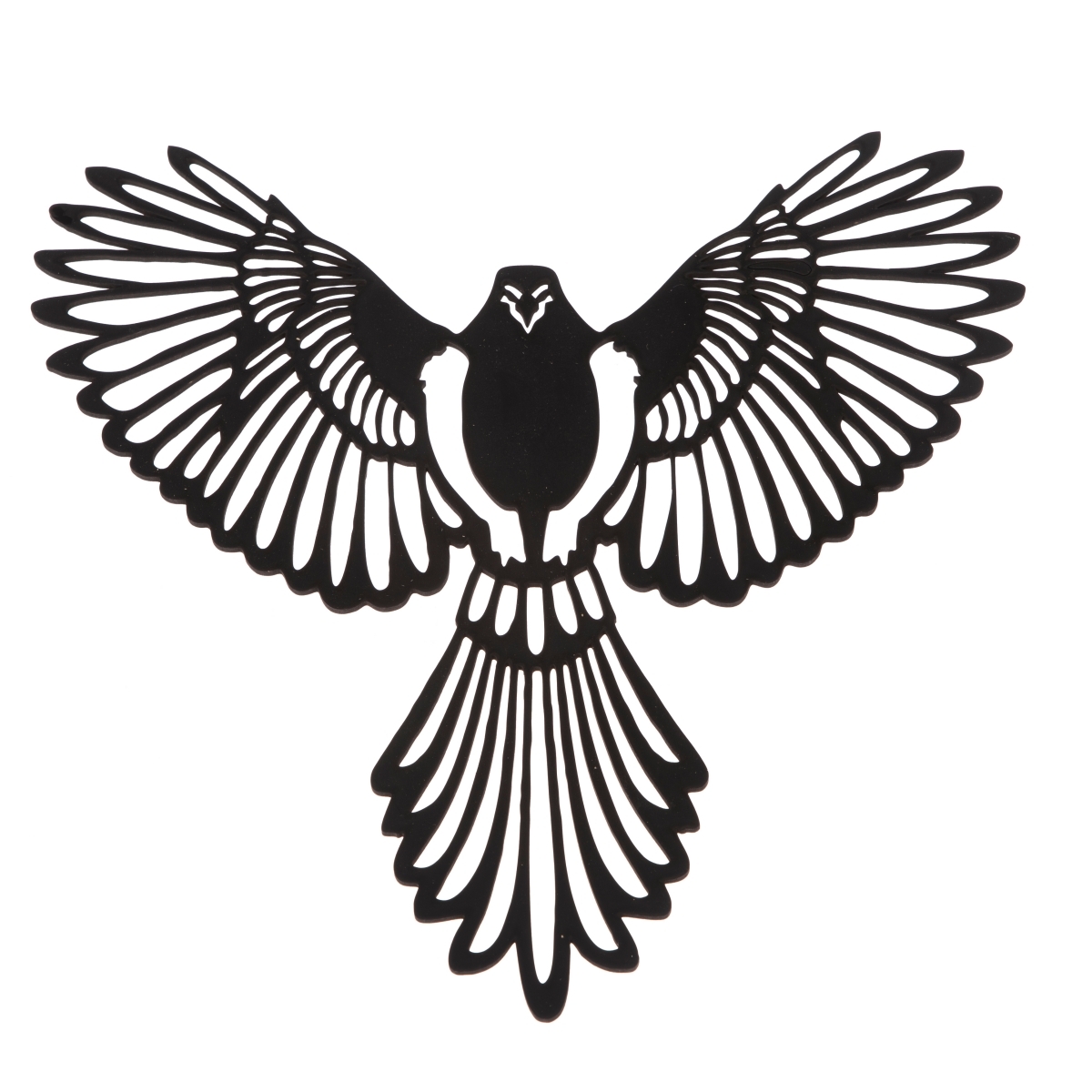 Dekorace ze dřeva na zeď s motivem ptáka s roztaženými křídly je vhodná do každého interiéru. Tvar je vyřezaný z dřevěné bukové překližky, ručně broušený a natřený kvalitní lazurou černé barvy.