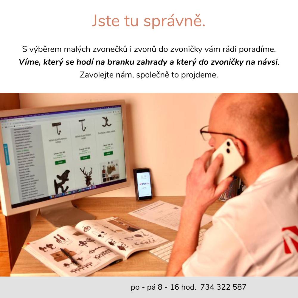 Ať už se rozhodnete pro menší zvonek, nebo velký kus s nezaměnitelným hlasem, u nás máte jistotu, že kupujete od specialisty s tradicí od roku 2008. Vaši objednávku pečlivě zabalíme a pošleme – a když budete potřebovat, jsme na telefonu i chatu, připraveni poradit.