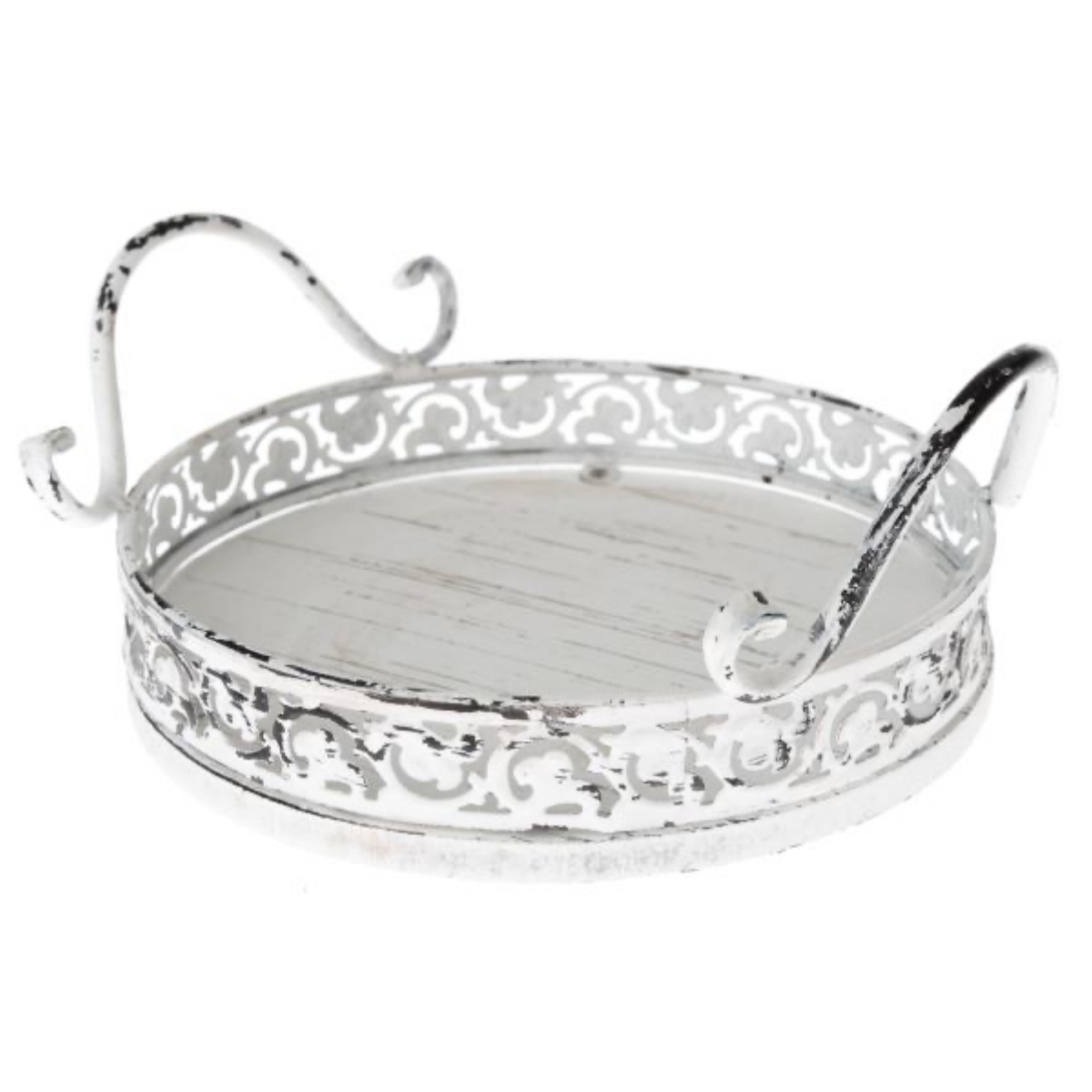 Dekorační podnos kovový s ozdobnými kovovými ornamenty na stranách a jemnou patinou můžete využít k servírování nebo z něj vytvořit aranžmá.