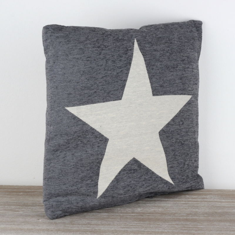 Dekorační polštář hvězda šedý 45x45cm ze silnější strukturované látky s motivem hvězdy se nese v odstínech šedé barvy, která je velmi univerzální a snese se s jakoukoli další barvou.