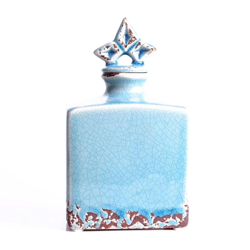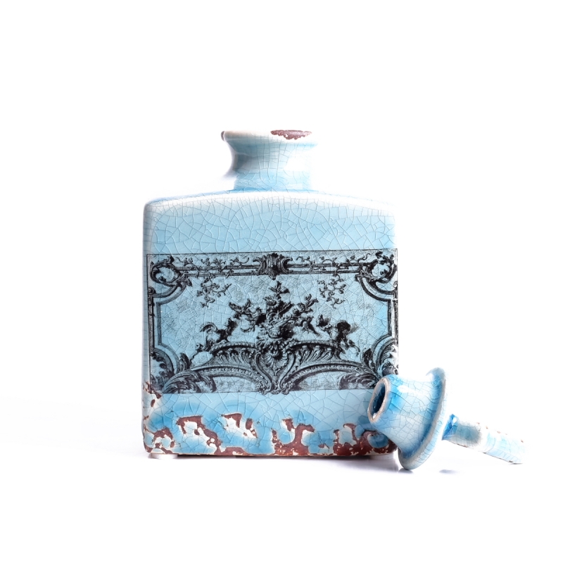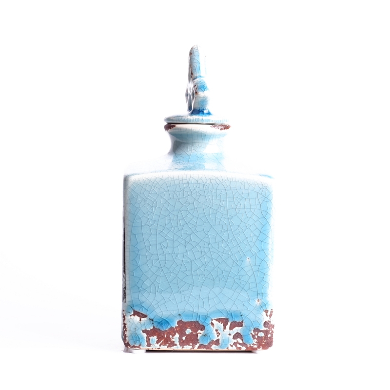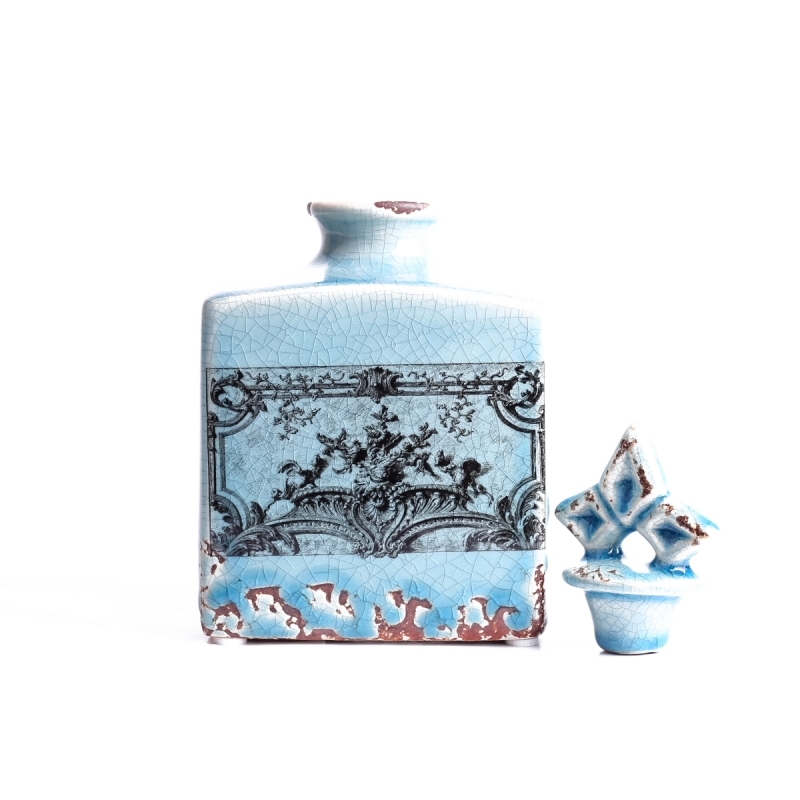 Bohaté zdobení, glazura s popraskaným vzhledem a tyrkysová barva - to vše společně působí velmi originálně a luxusně.