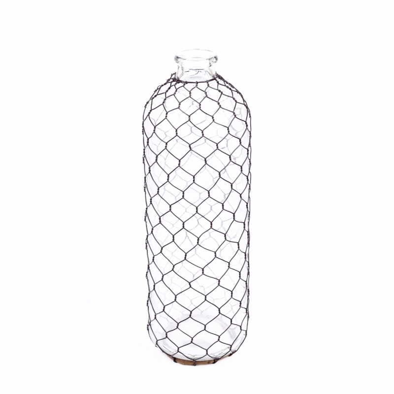 Dekorační váza sklenice s pletivem 34cm