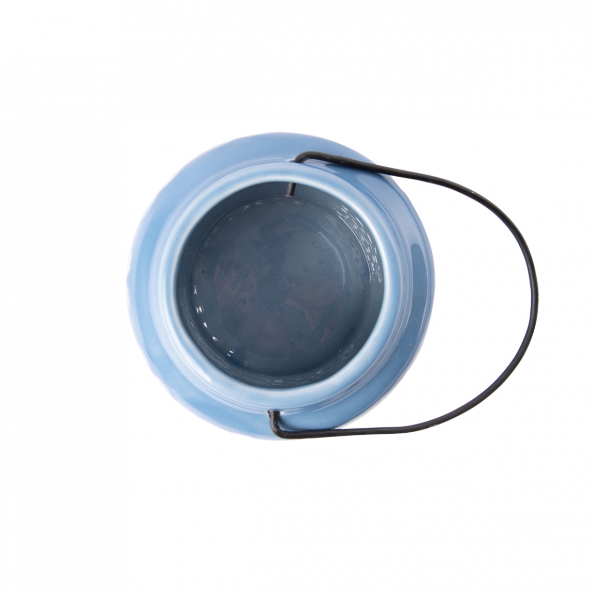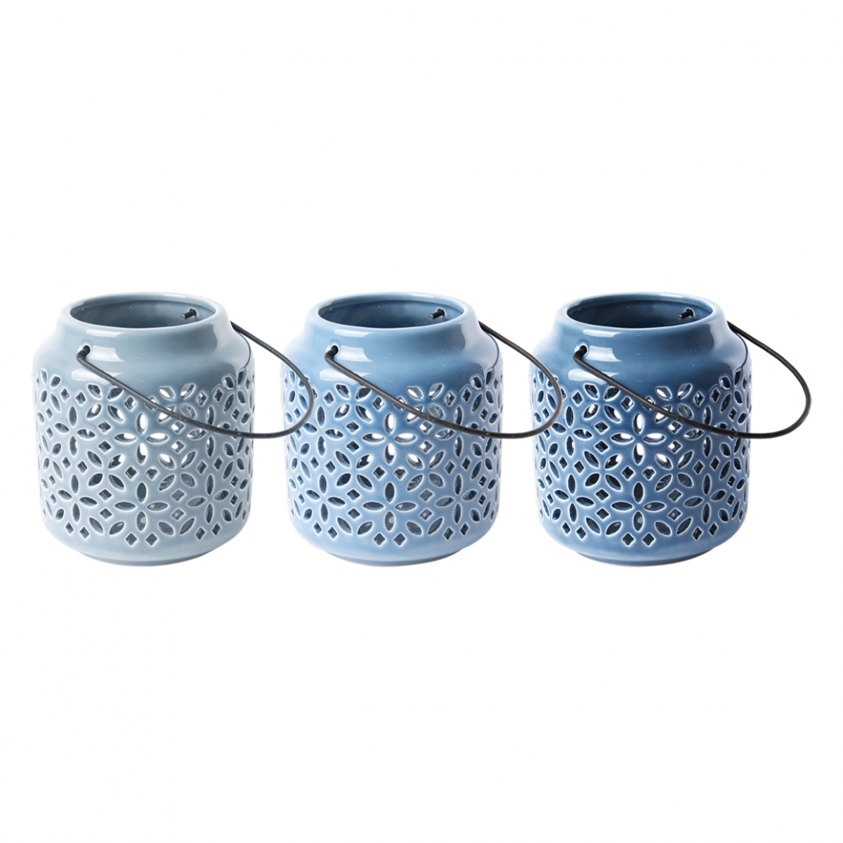Dekorativní lucerna z keramiky v modré barvě s ornamenty.