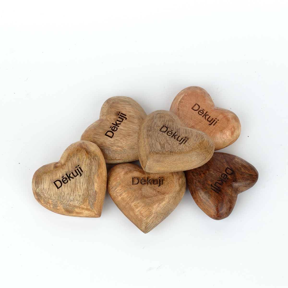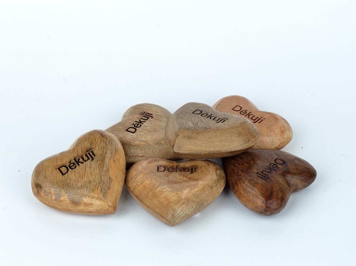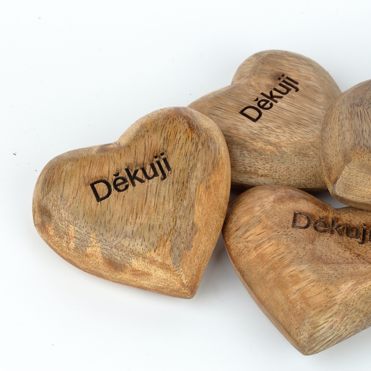 Ručně vyřezávané a broušené srdíčko z mangového dřeva, s nápisem Děkuji, a váš úsměv, vyjádří i to, co by nešlo popsat tisíci slovy ...