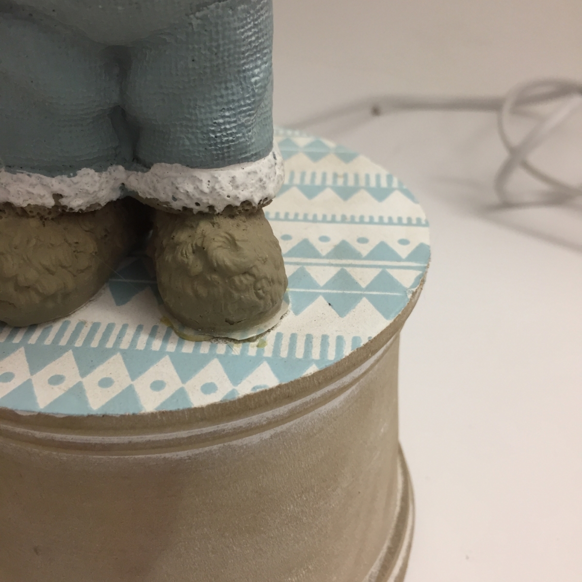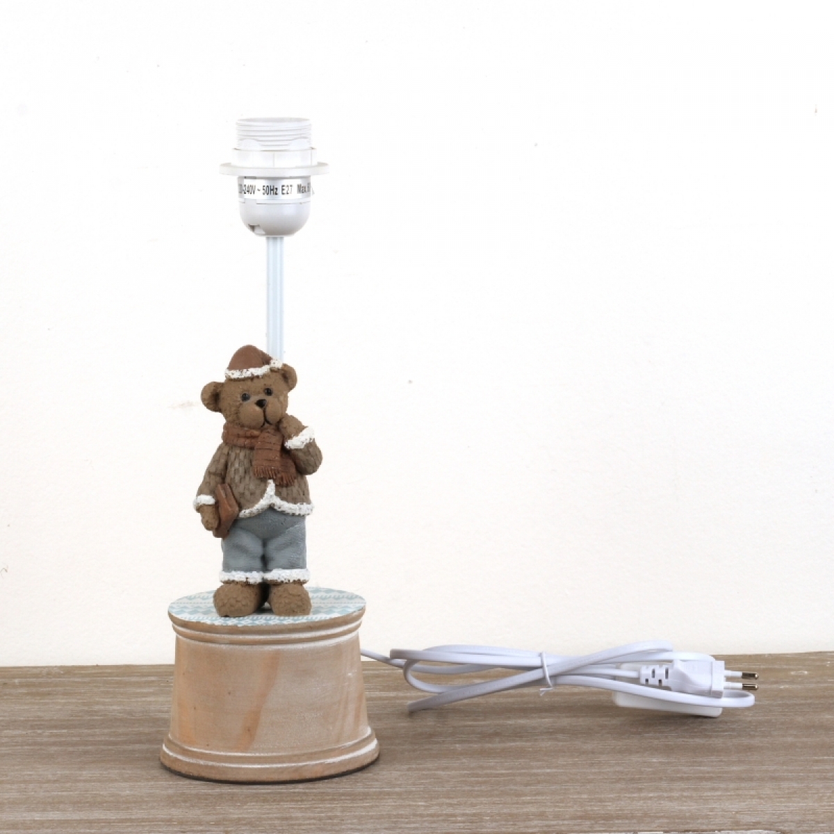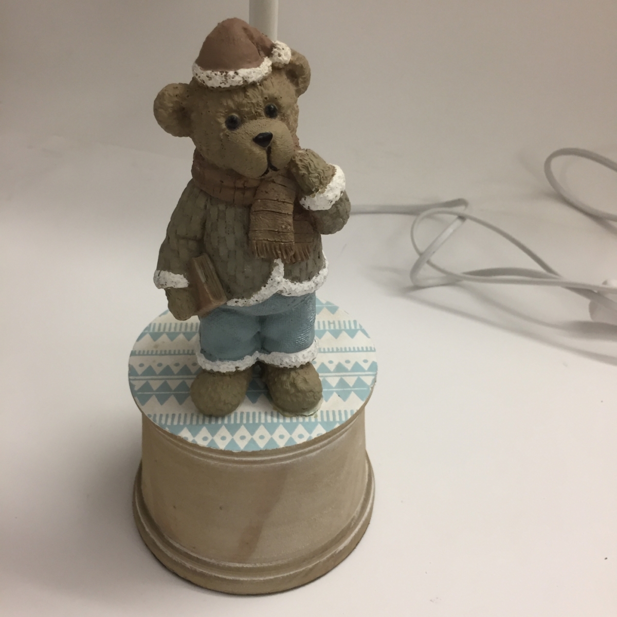 Stolní lampa (NOHA BEZ CYLINDRU) dětská byla vyřazená z důvodu uvolnění postavička medvídka. Snadno opravitelné přilepením. Cylindr lze doplnit běžným cylindrem např. IKEA.